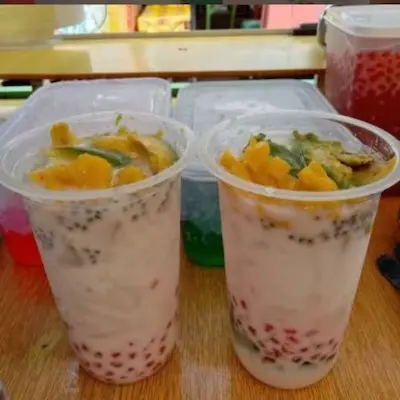 10. Es Cincau Selasih Susu dari Es Buah & Sop Buah KrishKhanz
