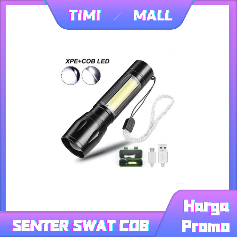 ❤️TIMIMALL❤️ Senter Swat Mini Zoom Super Terang Senter Swat Police LED COB Light Recharge 3 Mode
