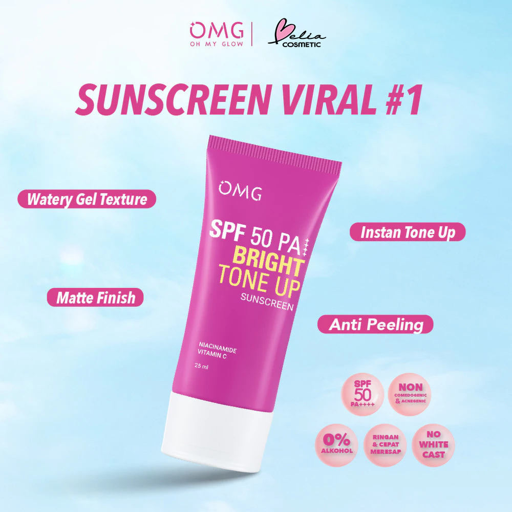 ❤ BELIA ❤ OMG Oh My Glow Bright Tone Up UV Barrier Sunscreen SPF 50 PA++ 25ml | Mencerahkan