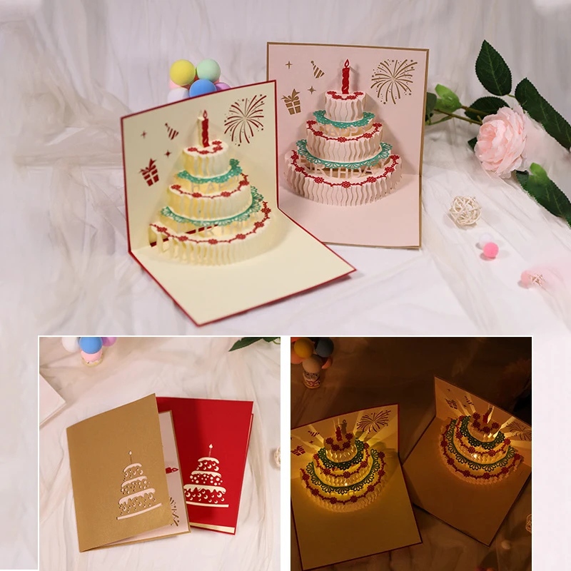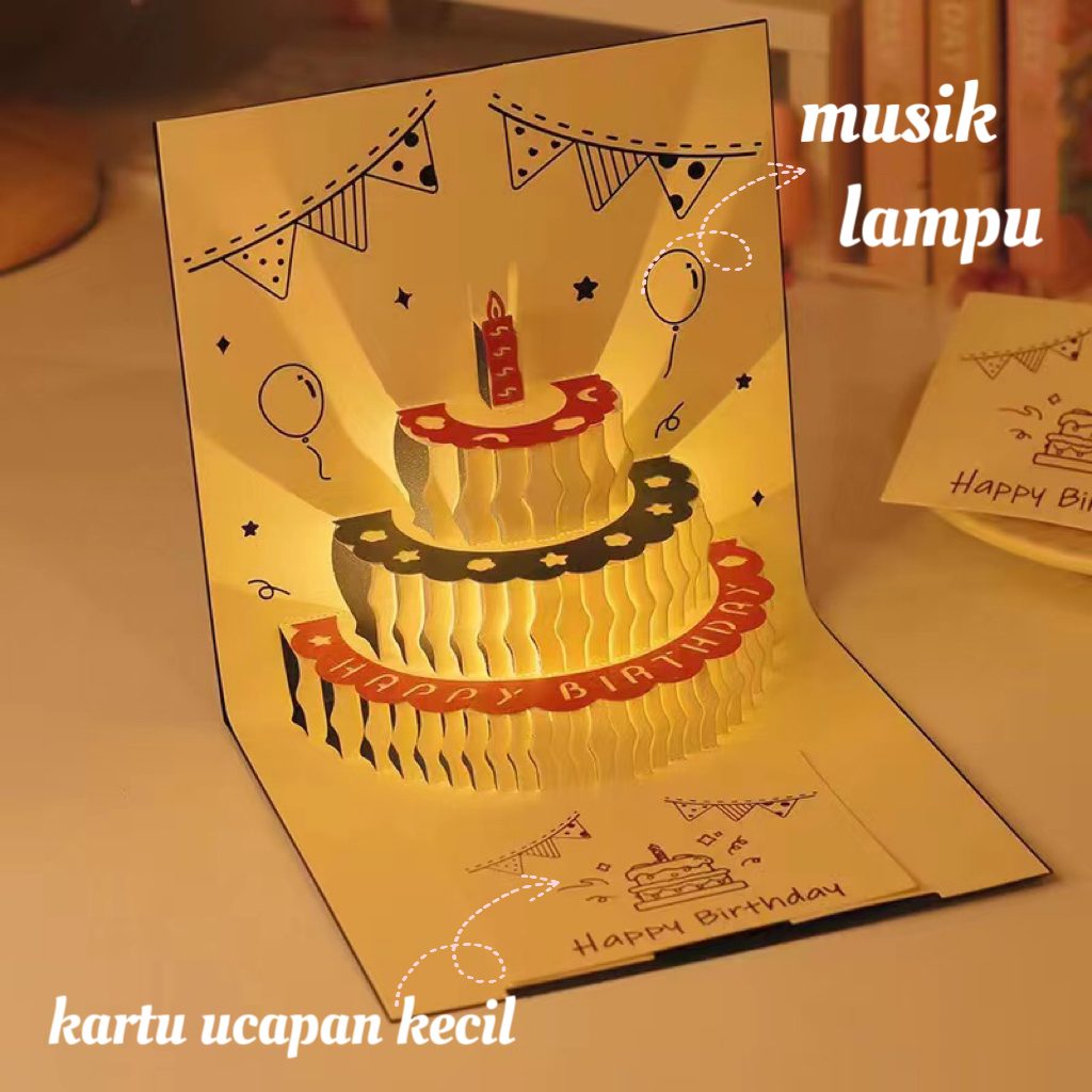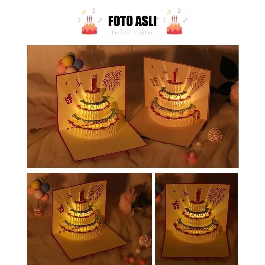 【Bisa COD】Kartu Ucapan Pop Up 3D Happy Birthday Card /Ada Lampu Dan Musik / Tulisan Happy Birthday Dengan Amplop