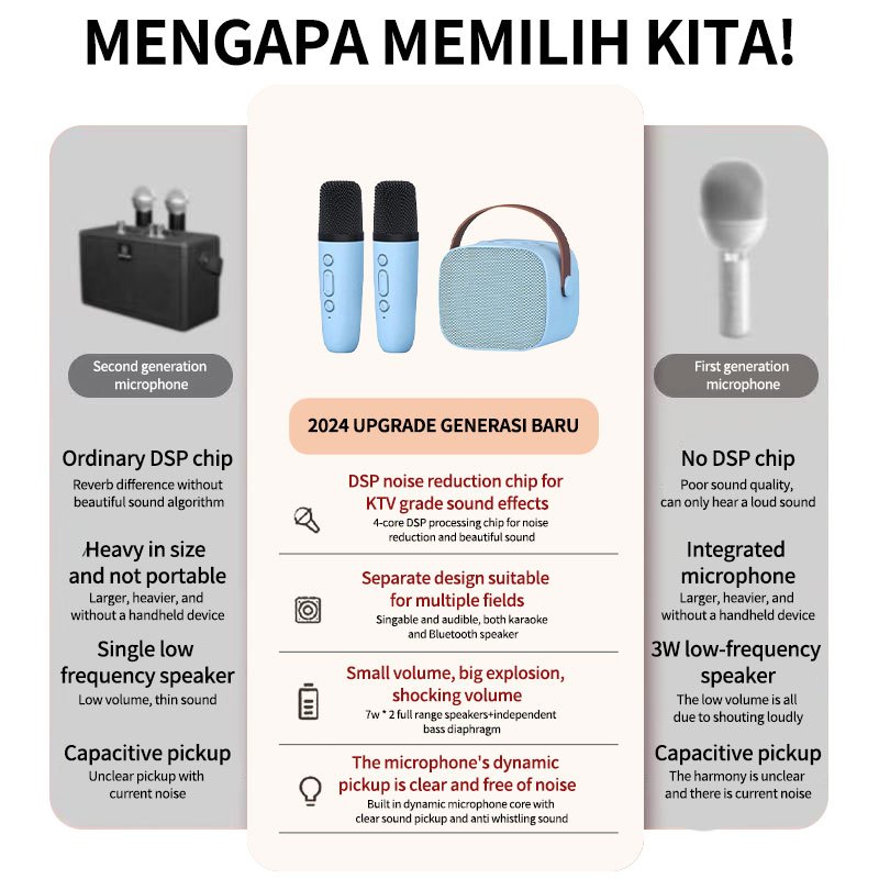 ⭐⭐【COD】Speaker Mini Bluetooth 2 mic 1 Karaoke /Speaker Bluetooth Plus Mic Aktual /Mini Full Bass Portable Wireless