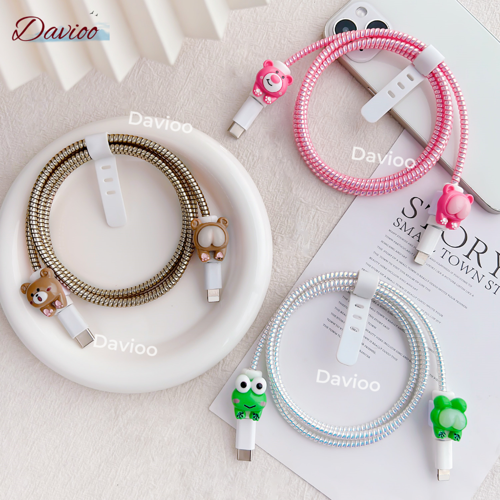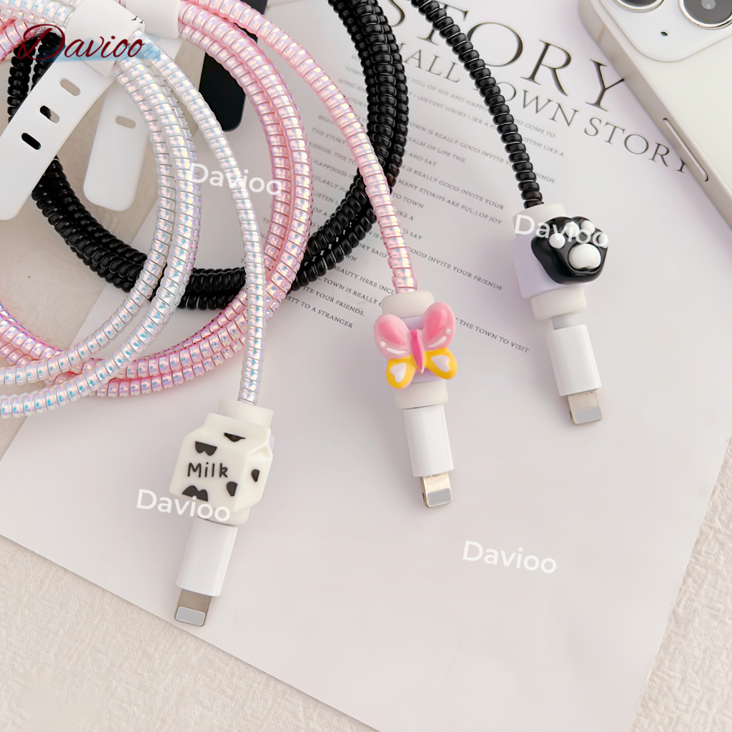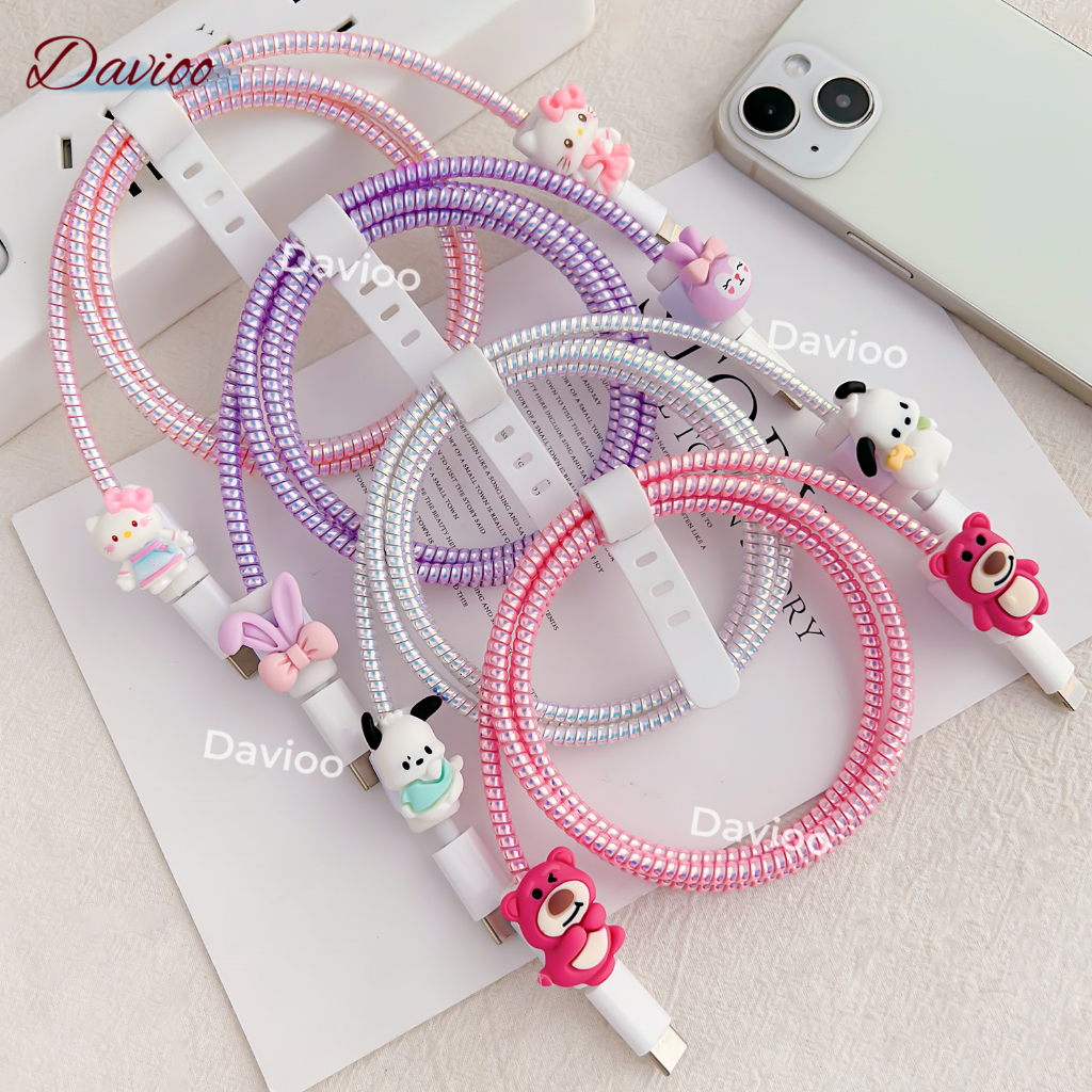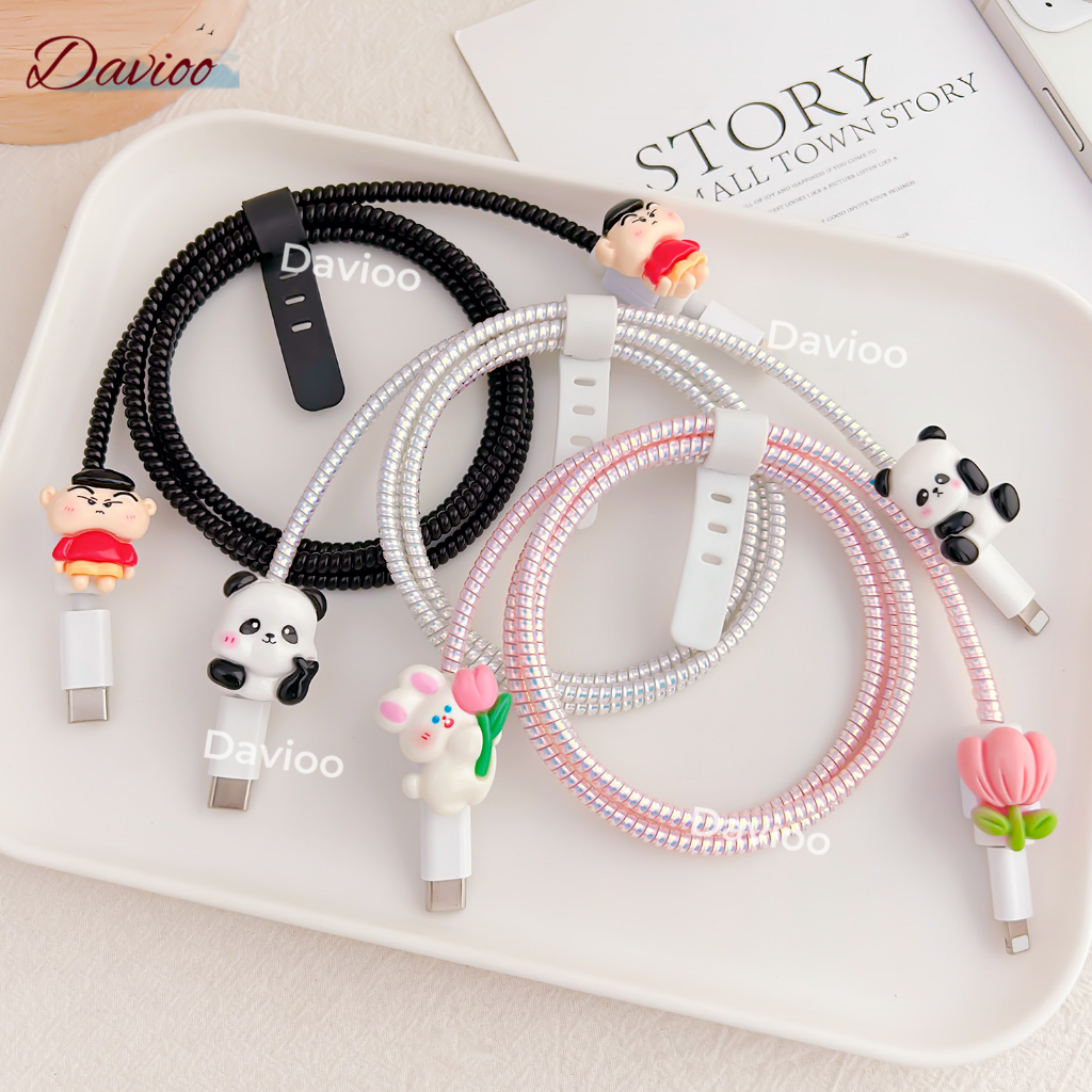 1 Set 4 item Pelindung Kabel Charger Kabel Data Kawat Kabel Data HP Untuk Iphone Samsung Xiaomi Oppo Huawei Android Universal Motif Kartun Lucu