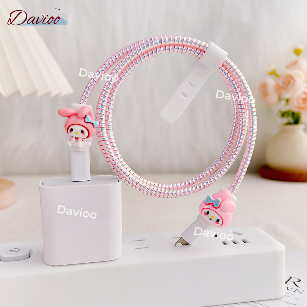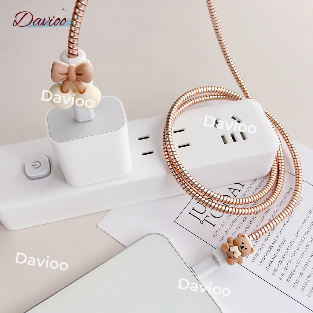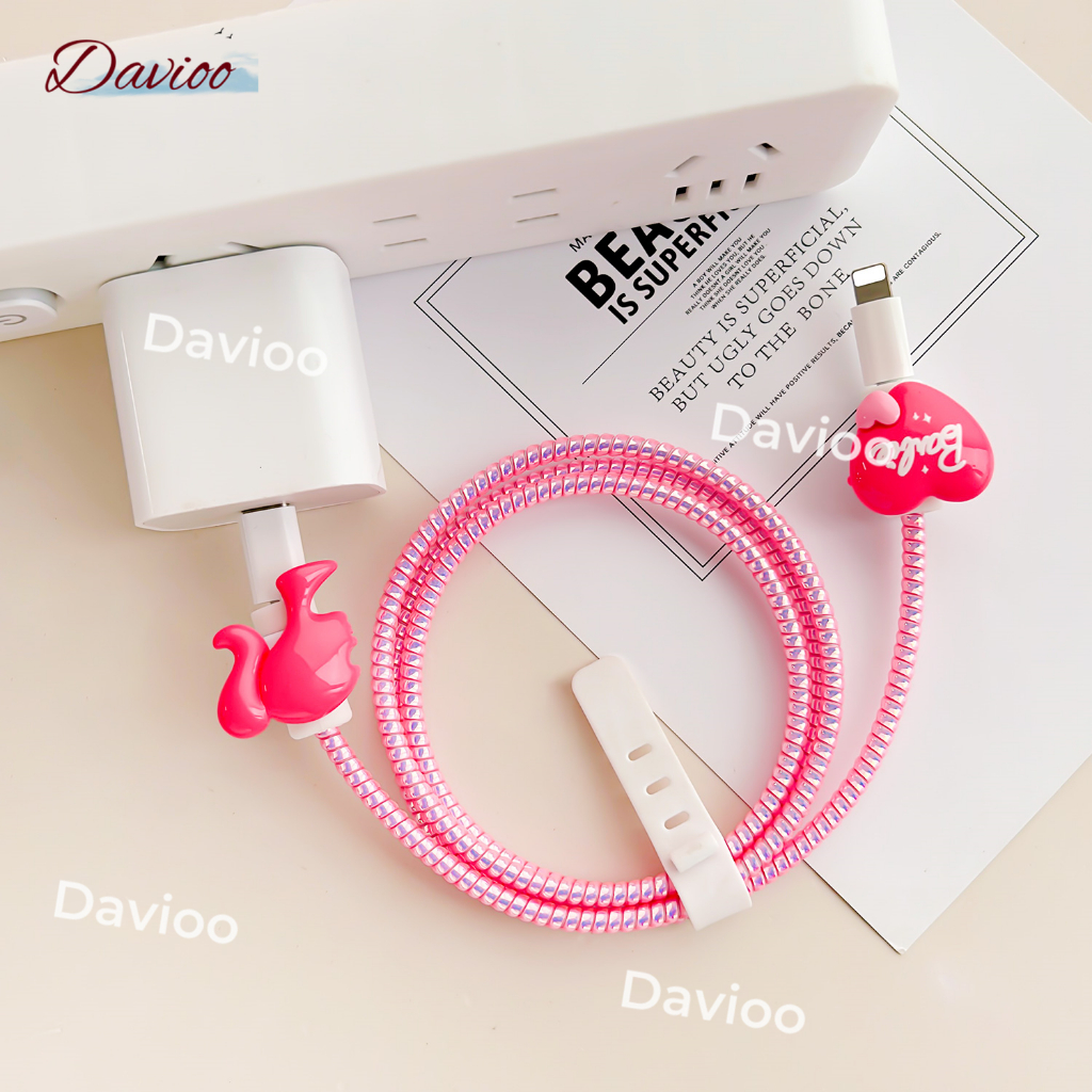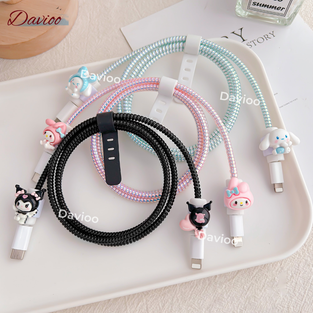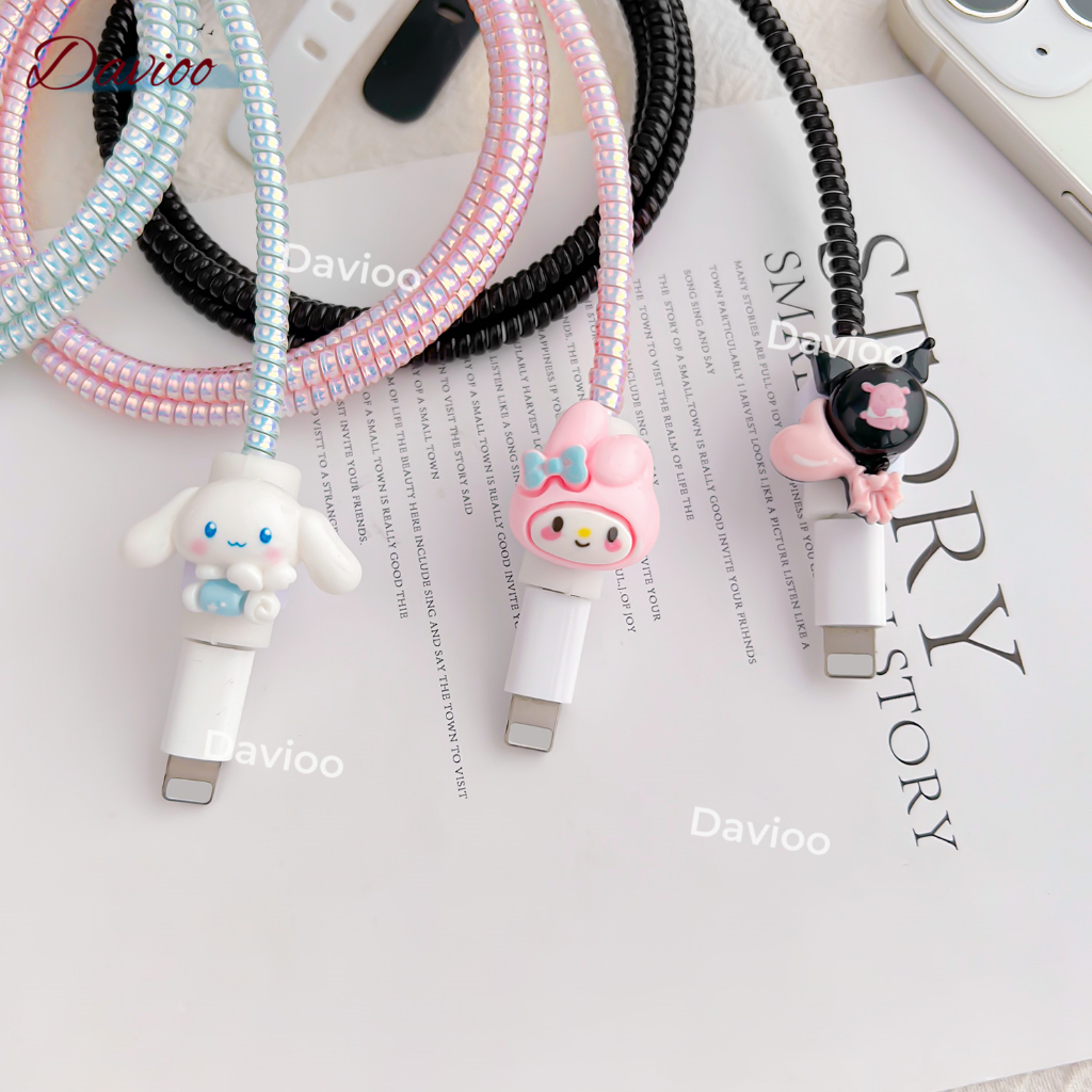 1 Set 4 item Pelindung Kabel Charger Kabel Data Kawat Kabel Data HP Untuk Iphone Samsung Xiaomi Oppo Huawei Android Universal Motif Kartun Lucu