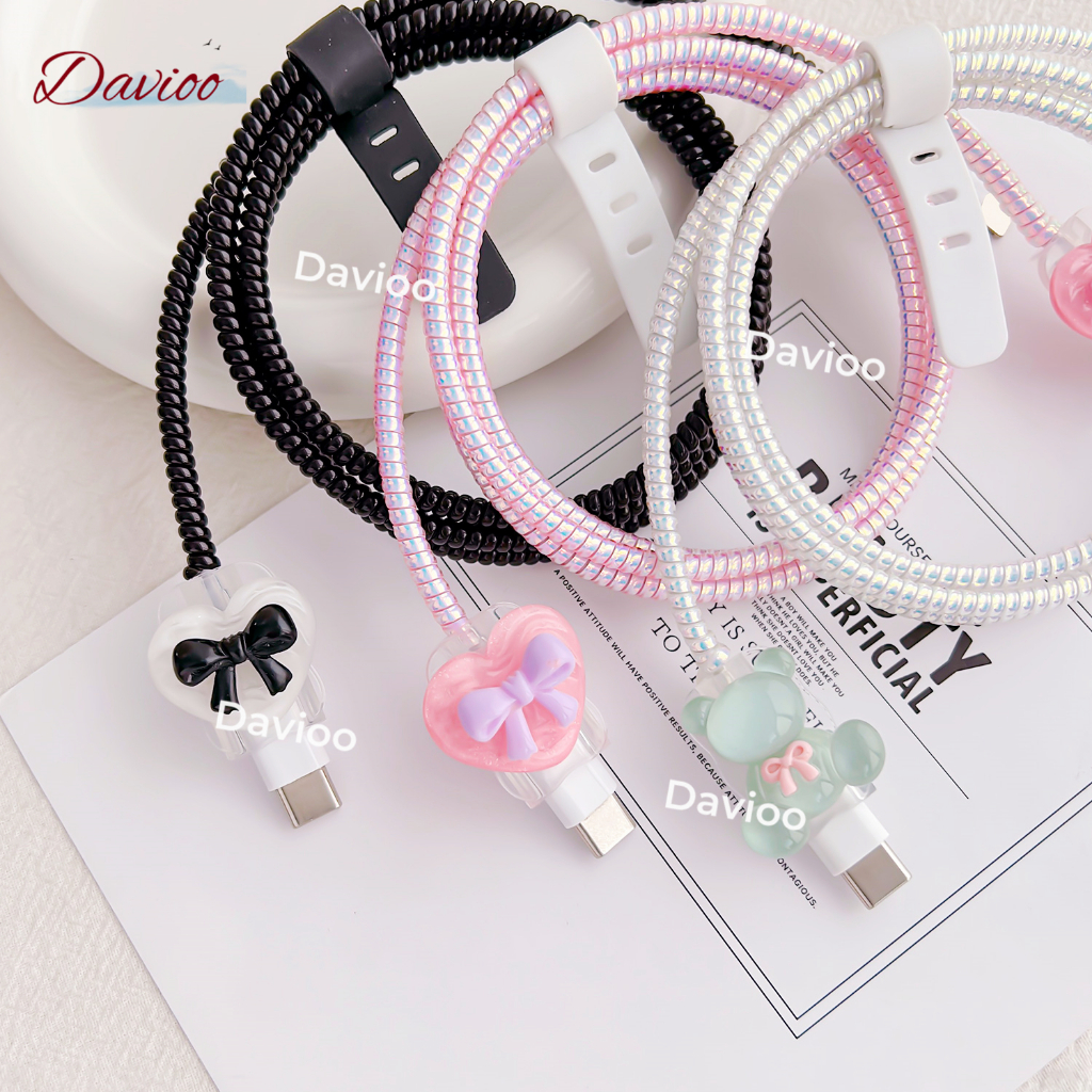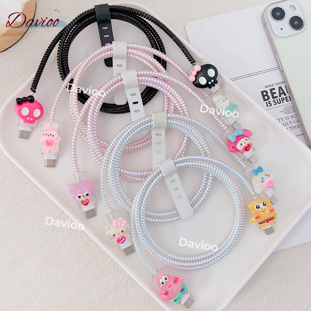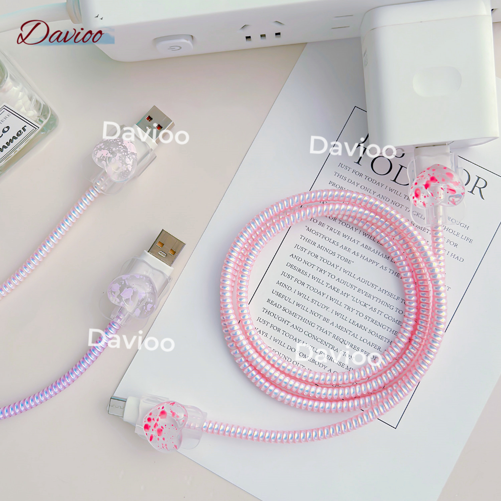 1 Set 4 item Pelindung Kabel Charger Micro USB+Type-C dan Type-C+Type-C Pelindung Kabel Data Kawat Kabel Data Handphone