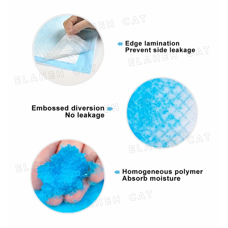 3. Bantalan kencing penyerap polimer, permukaannya kering dan tidak membasahi kaki, hewan peliharaan tidak akan mengeluarkan air seni saat meninggalkan pembalut.