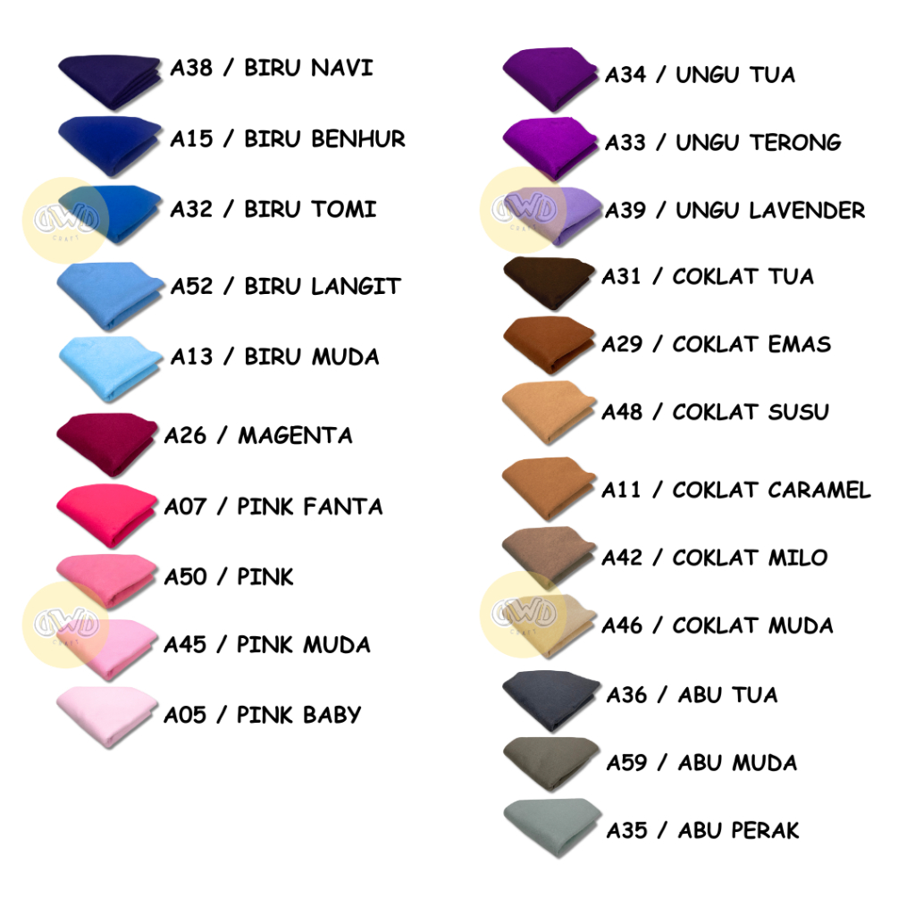 Kain flanel berkualitas dan tebal. Cocok dijadikan bahan dasar kerjainan tangan. Tersedia dalam berbagai variasi warna. Tanyakan ketersediaan warna sebelum membeli.
