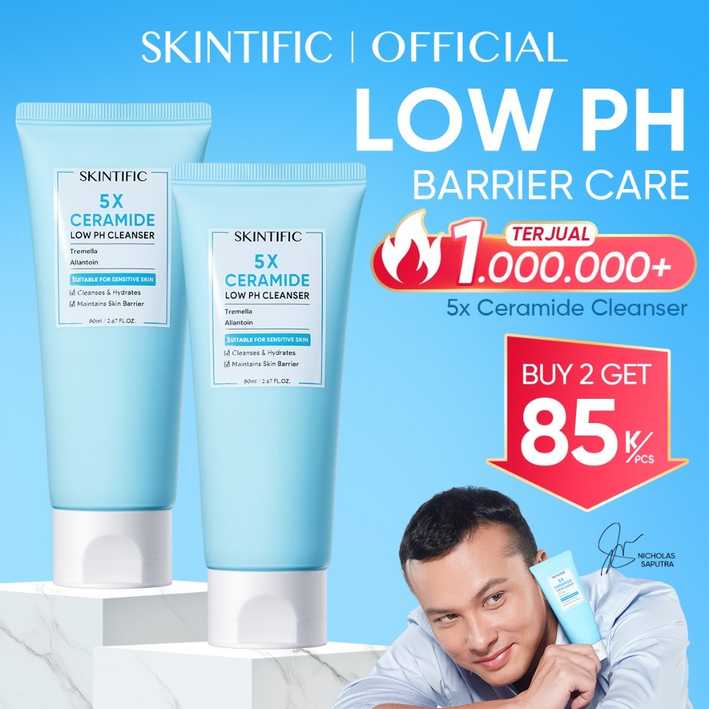 [2PCS DISKON] SKINTIFIC – Low pH Cleanser 80ml | 5X Ceramide Menjaga Skin Barrier Facial Wash Tidak Bikin Muka Ketarik Cleanser Sabun Wajah Untuk Semua Jenis Kulit Sensitive Redness Calming Fresh Glowing Barrier Soothing Amino Acid