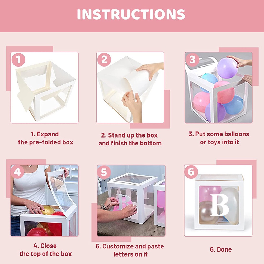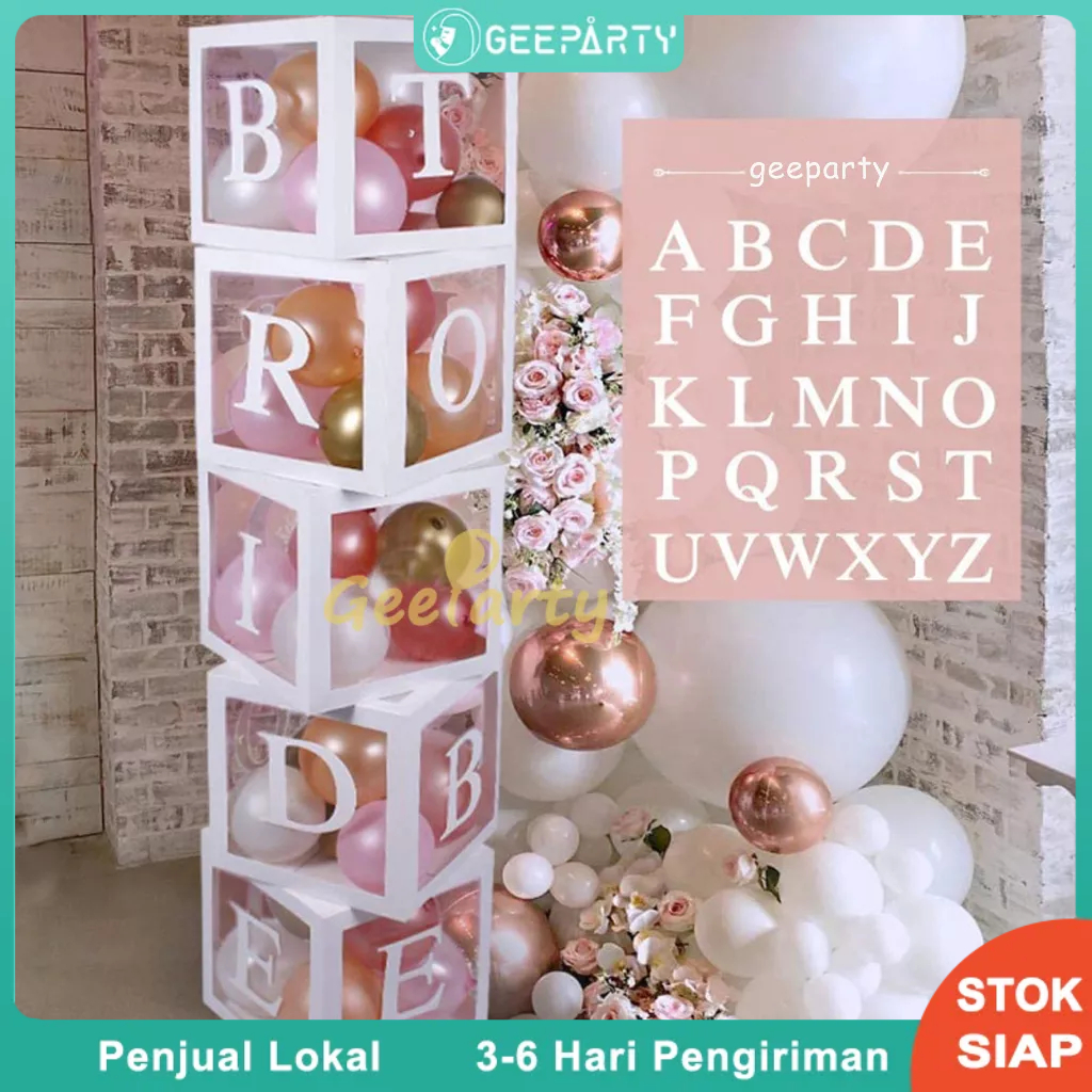 30*30cm A-Z Alfabet Transparan Putih Kotak Balon Box untuk Dekorasi Pesta Ulang Tahun Party Decor