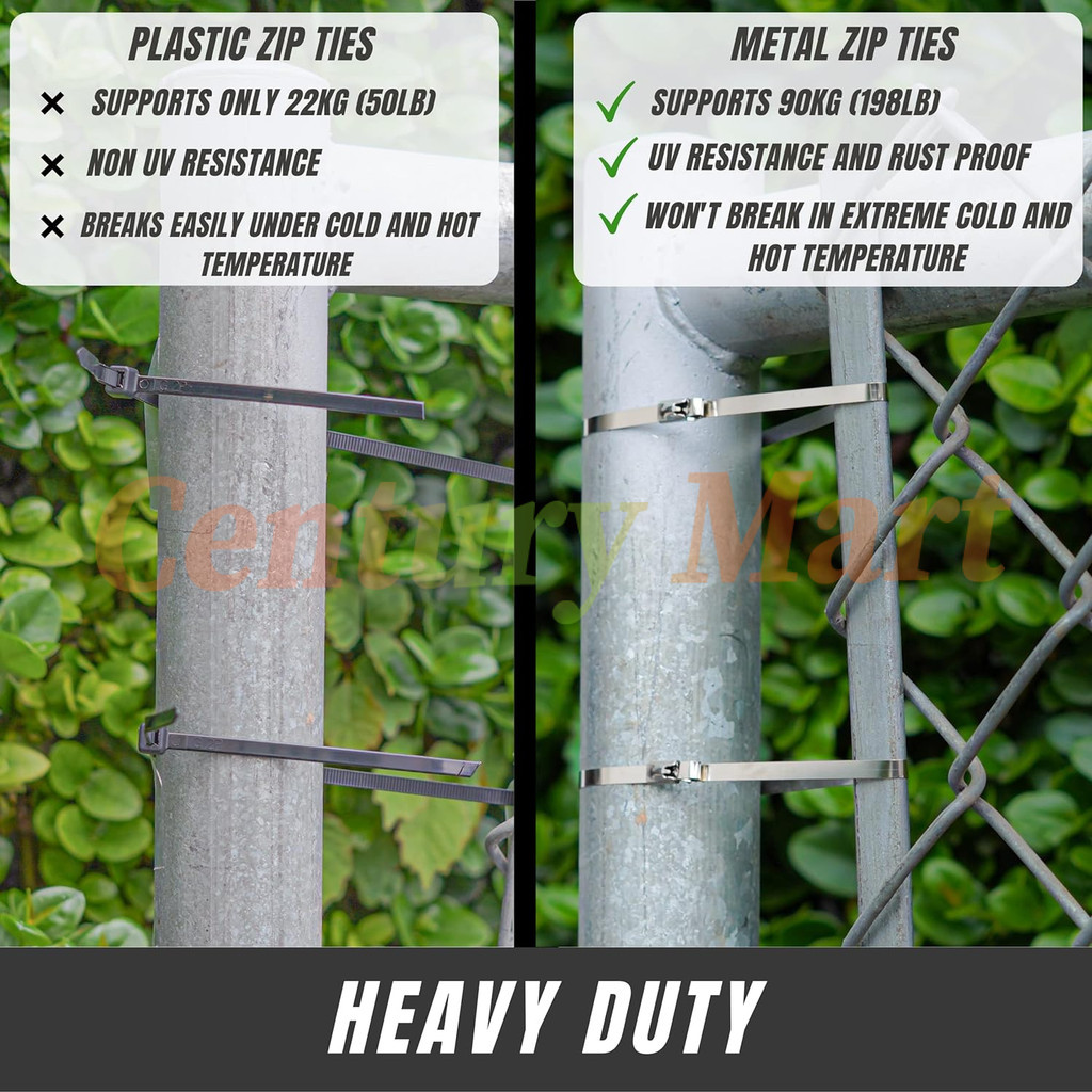 *Tidak seperti ikatan ritsleting plastik tradisional, ikatan logam tugas berat ini tidak akan rusak oleh sinar UV di bawah sinar matahari seperti ikatan ritsleting plastik biasa.
