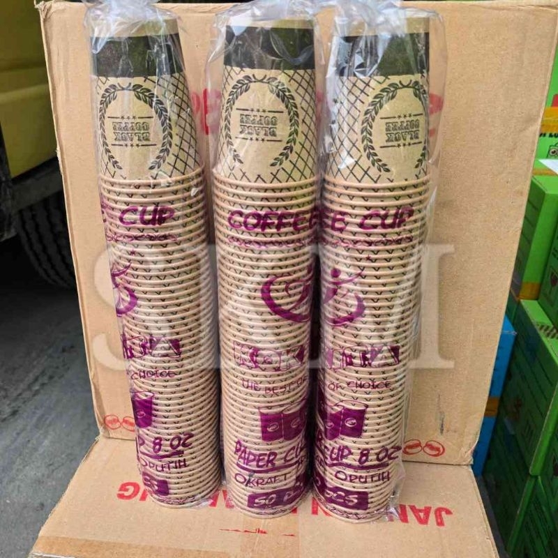 Beranda » Produk » [50 PCS] Paper Cup kraft 8 Oz Motif / Gelas Kertas Minuman Panas 8 Oz Kraft Motif