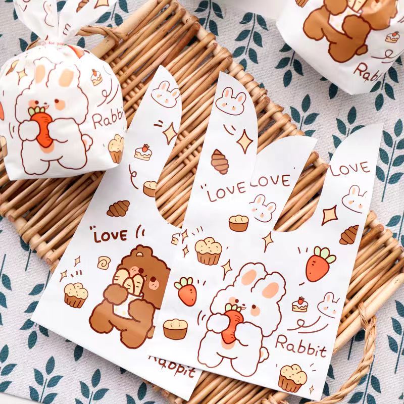 50buah tas kemasan snack kelinci plastik/tas kado biskuit ukuran kecil