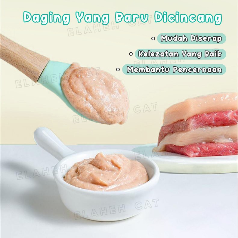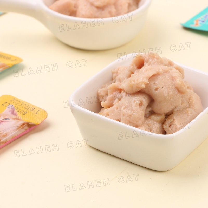 Rasa: Ayam + Kuning Telur - Bahan utama: ayam segar, kuning telur, prebiotik, minyak ikan, ekstrak rumput laut