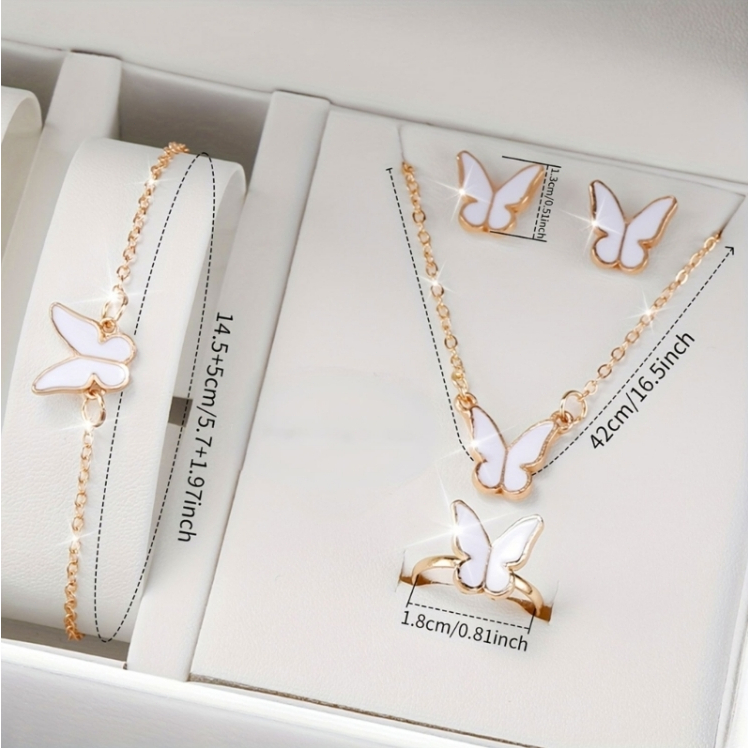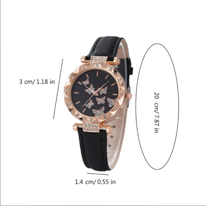 Beranda » Produk » 6 Pcs Mewah Perhiasan Wanita Cincin Kalung Anting Gelang Set Jam Tangan Kupu-kupu Tali Kulit Wanita Kuarsa Jam Tangan Tidak Ada Kotak