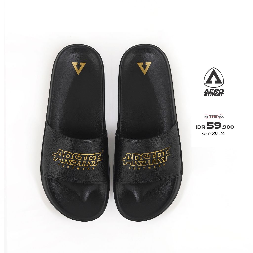 Aerostreet 39-44 Electra Hitam Hitam – Sandal Sendal Selop Slip On Casual Pria Wanita Aero Street 22AAA0