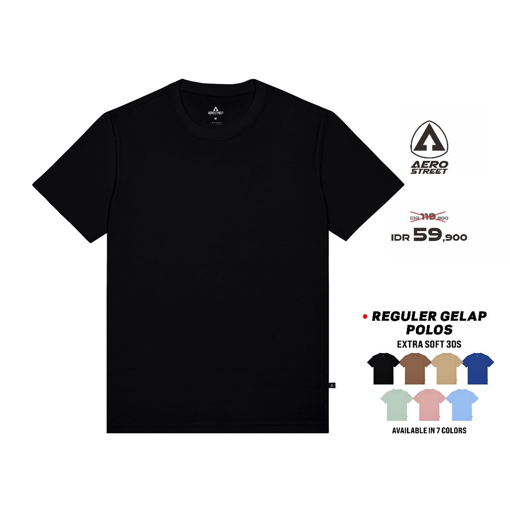 Aerostreet Extra Soft T Shirt Reguler Polos Gelap Kaos T-Shirt KAAAA