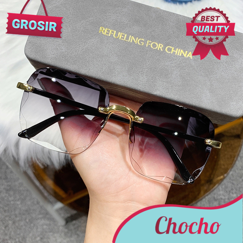 ALOY GROSIR PL-MX005 Kacamata Hitam Wanita Fashion Gaya Tanpa Bingkai Termurah