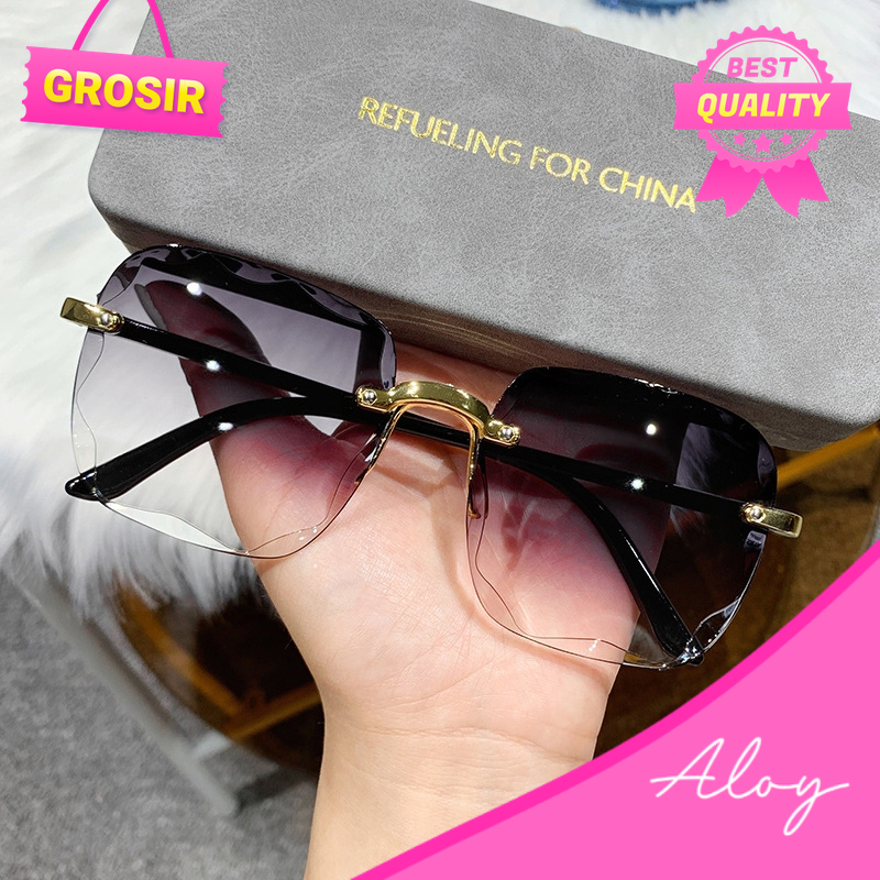 ALOY GROSIR PL-MX005 Kacamata Hitam Wanita Fashion Gaya Tanpa Bingkai Termurah