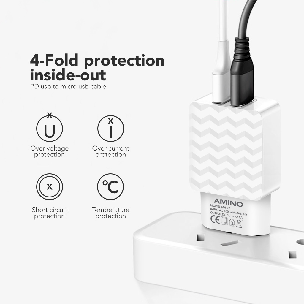AMINO 2 Port USB Fast Charger 2.1A Micro USB Quick Charger Adapter MH-22
