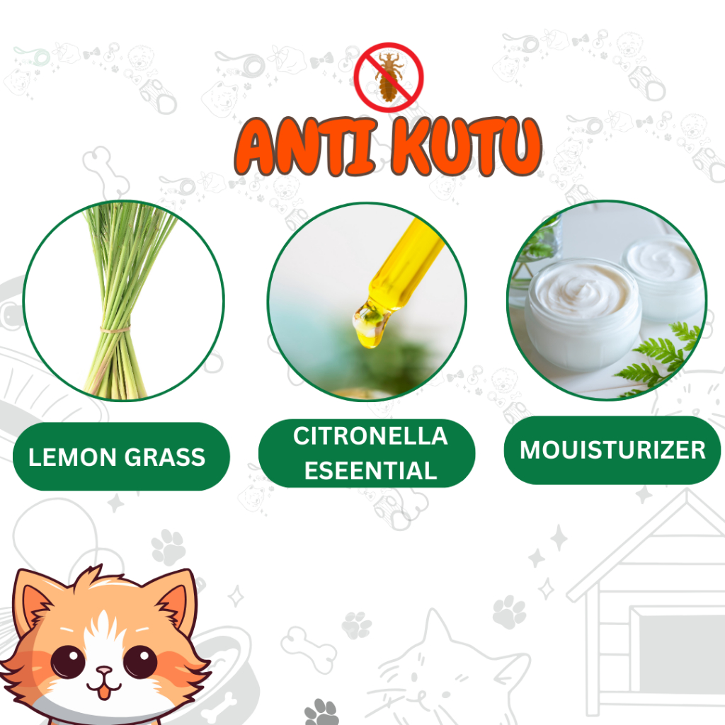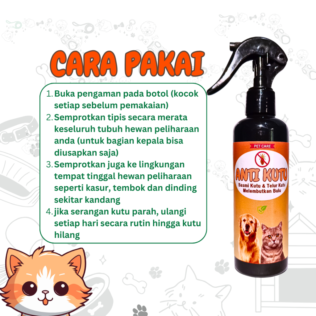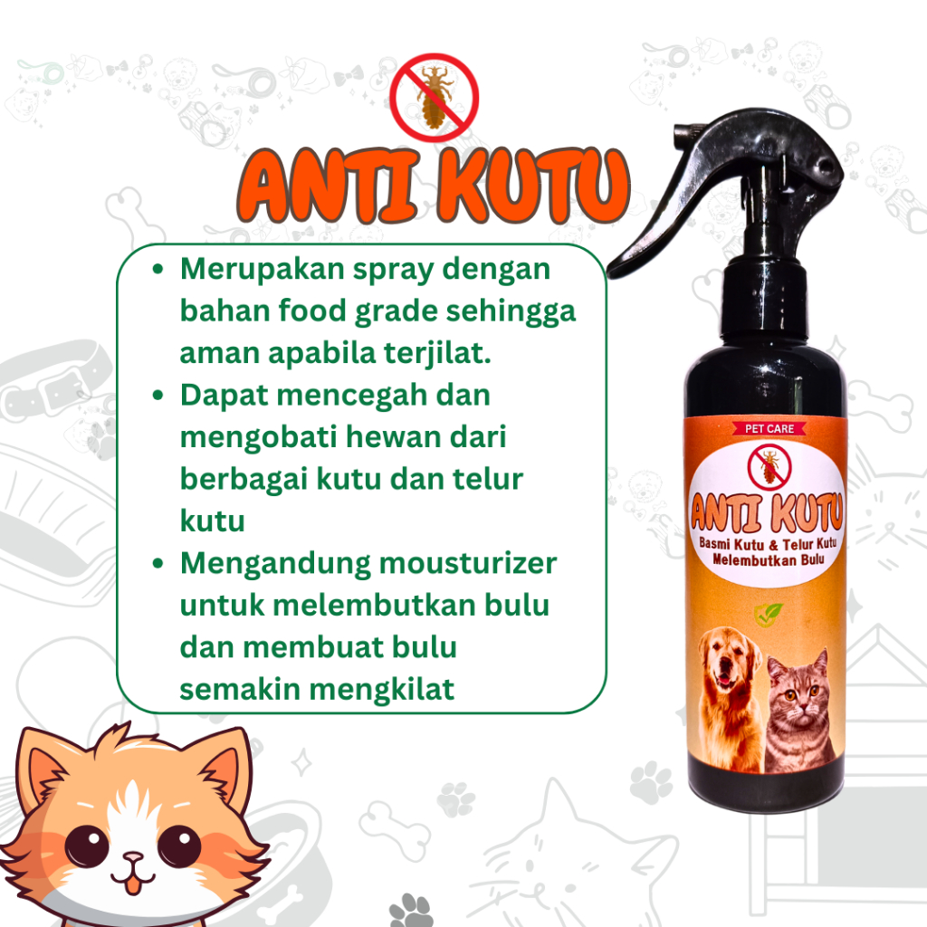 ANTI KUTU Merupakan spray dengan bahan food grade sehingga aman apabila terjilat.