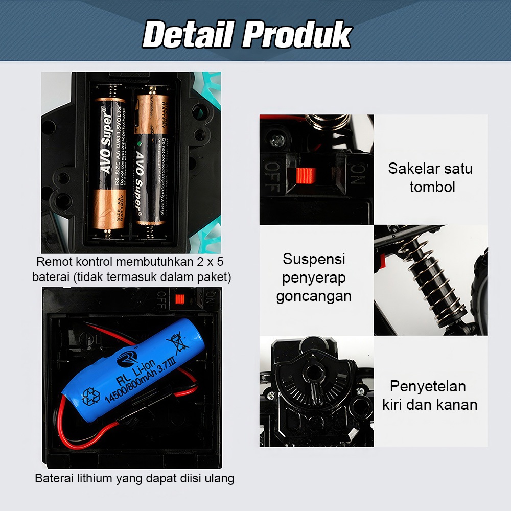 🎉- Mobil RC ini dilengkapi dengan sistem shock absorber yang sangat bertenaga, berbeda dengan mobil RC biasa. Desain ini secara efektif dapat memperpanjang masa pakai mobil remote control.