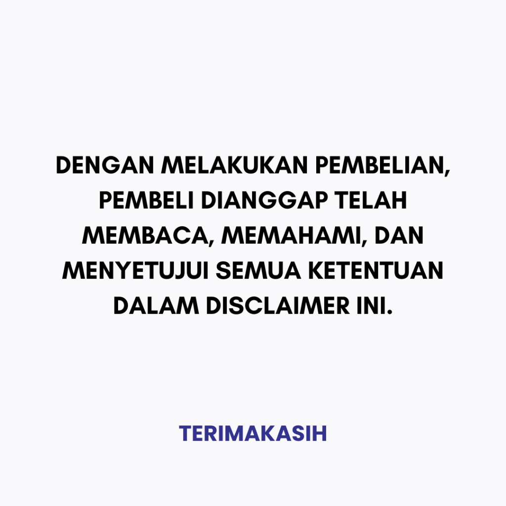 9. Dengan melakukan pembelian, pembeli dianggap telah membaca, memahami, dan menyetujui semua ketentuan dalam disclaimer ini.