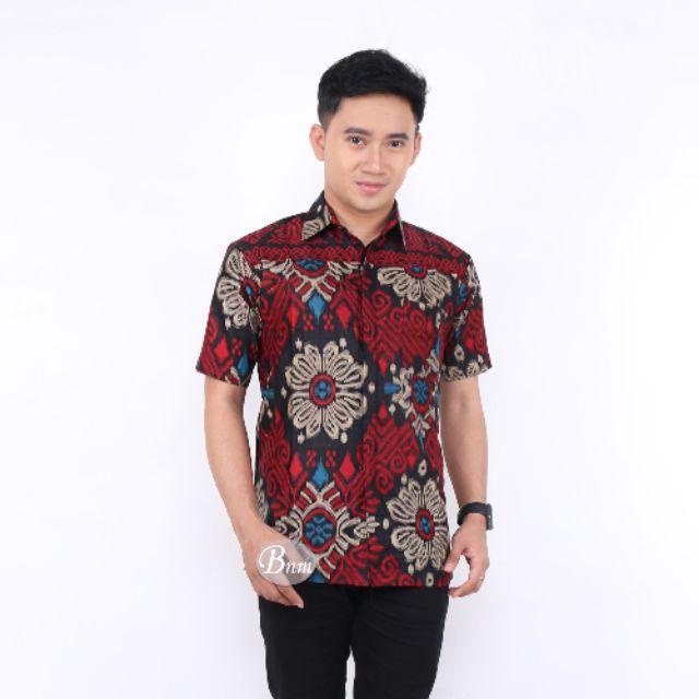 Batik Pria Lengan Pendek Premium BATIK AZIMIL HRB026 motif KERATONAN Kode 002 size M L XL XXL