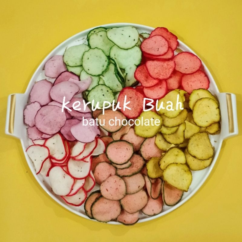 Sedangkan Kerupuk buah adalah camilan renyah dan lezat yang terbuat dari buah dengan campuran tepung yang diolah kemudian digoreng, rasanya yang nikmat seperti buah aslinya pasti bikin ketagihan.