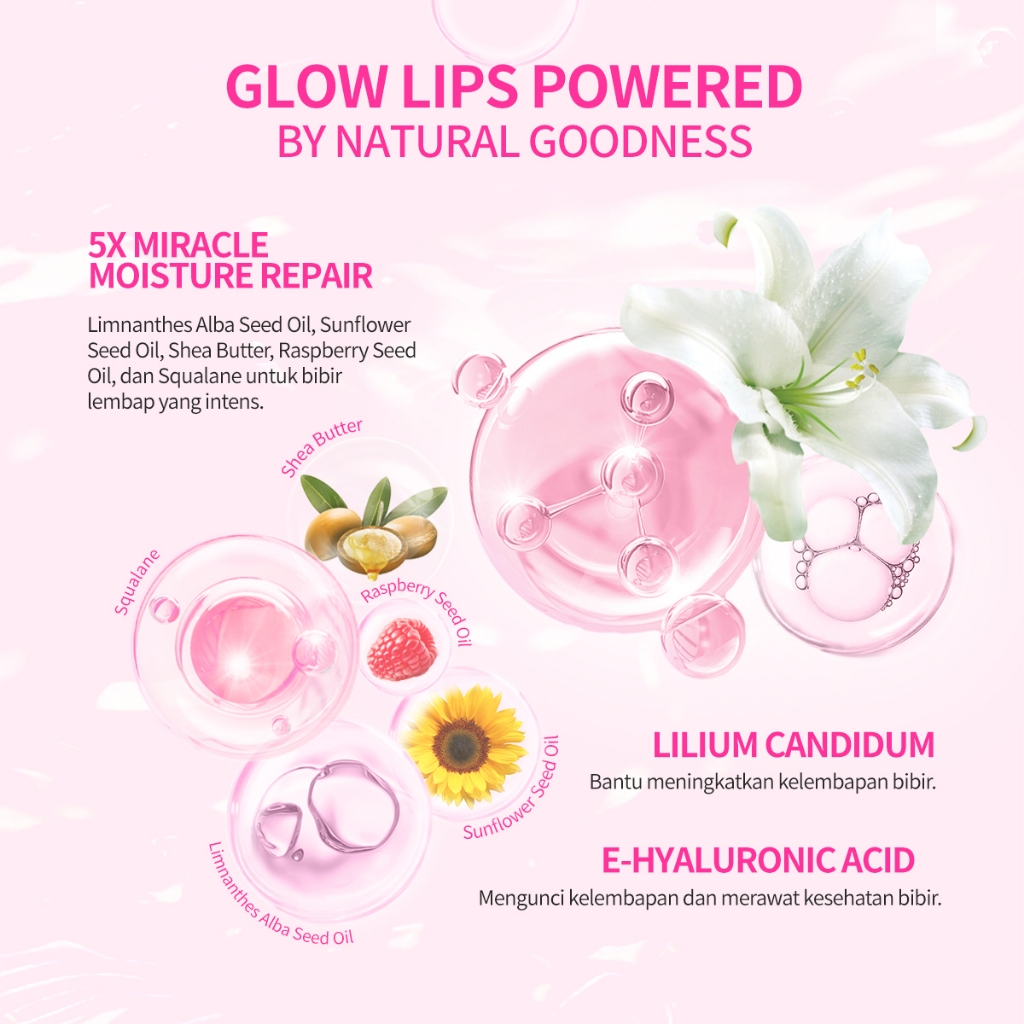 Dengan kandungan alami 5 Miracle Moisture Repair, Hyaluronic acids, Lilium Candidum dan Vitamin E untuk menghidrasi bibir dari lapisan luar hingga dalam.