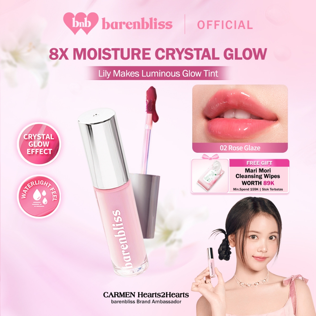 [BEST SELLING] BNB barenbliss Lily Makes Luminous Glow Tint 2.5 g Liptint Ombre Glossy Melembapkan Anti Kering 8X Moisturizing Vitamin E Hydrating Stain Ringan Alami & Kilau Tahan Lama 12 Jam Waterproof Transferproof LipstickLipgloss Lip Matte