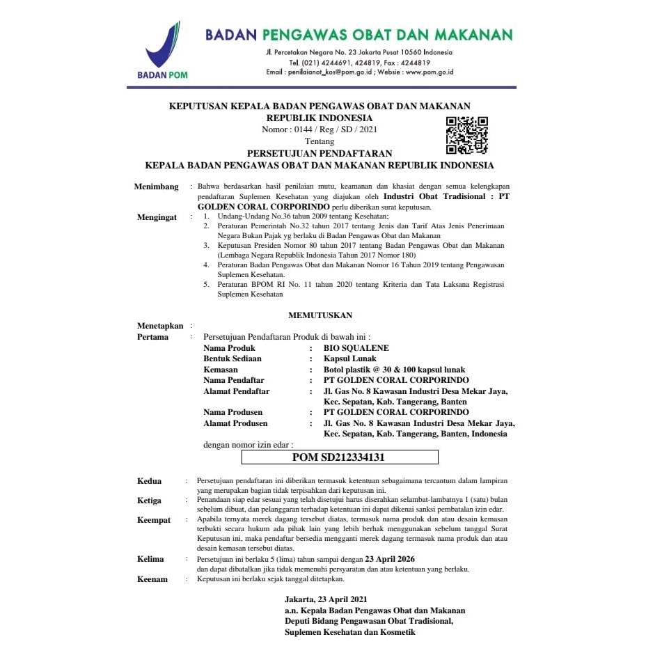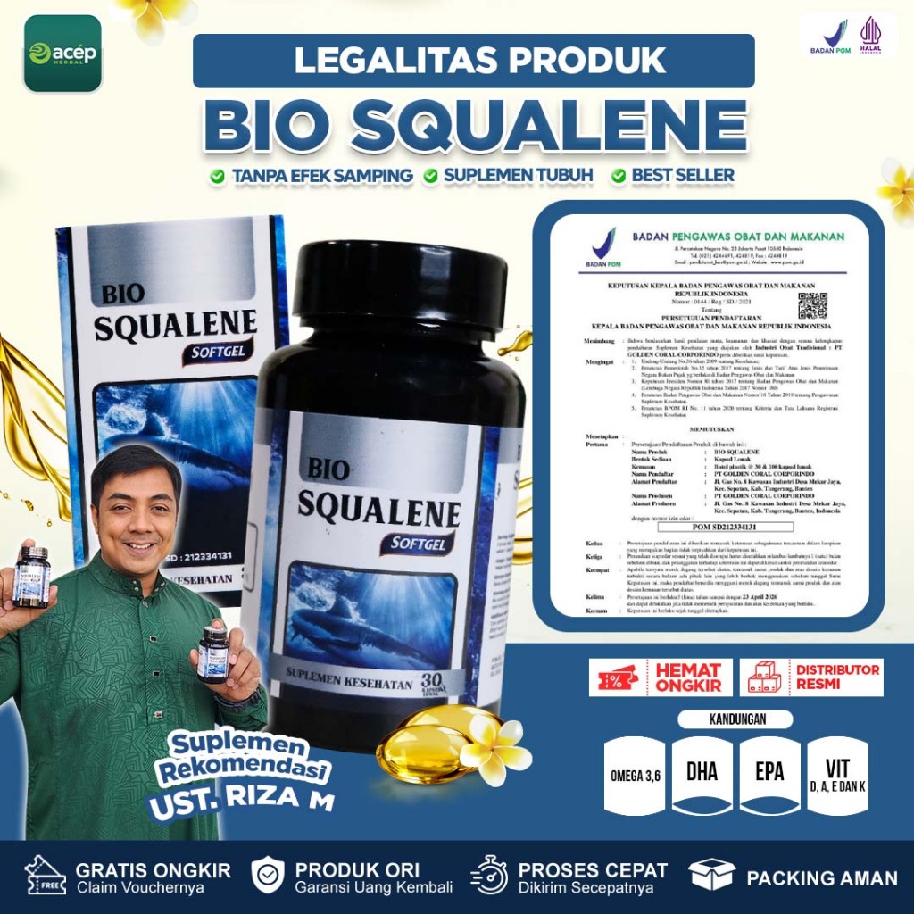BIO SQUALENE merupakan produk herbal yang terbuat dari 100% Minyak Hati Ikan Hiu yang bermanfaat untuk memelihara kesehatan tubuh dan mengatasi berbagai macam penyakit. Minyak Hati Ikan Hiu mengandung vitamin C yang dapat meningkatkan sistem kekebalan dalam tubuh