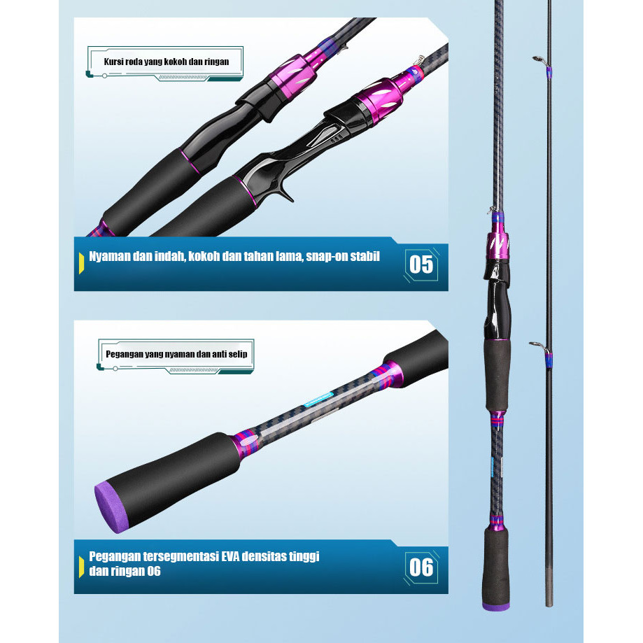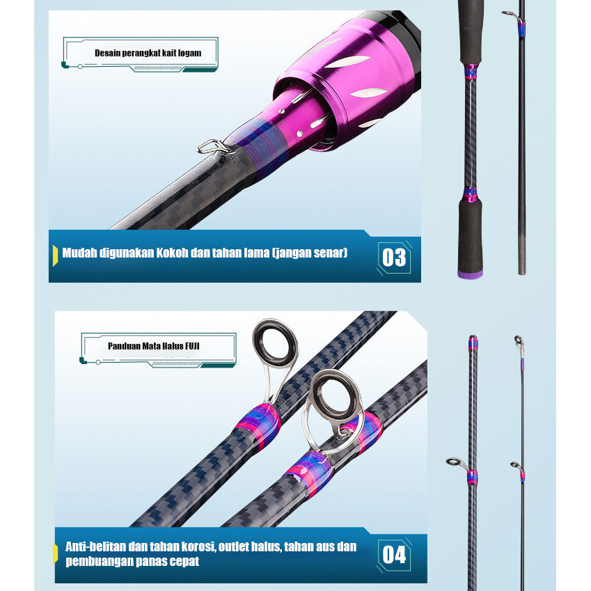 Pancing ini terbuat dari serat karbon tinggi, kuat dan tahan lama.