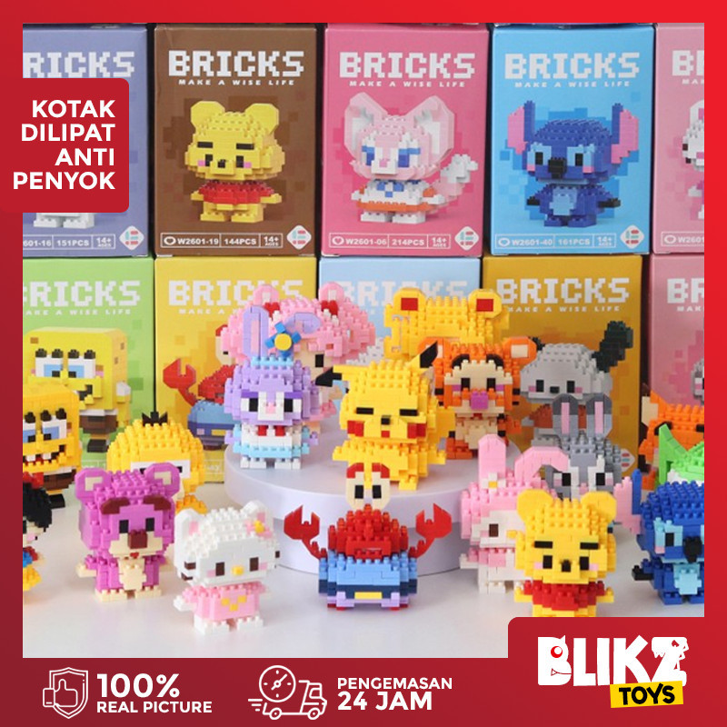 BLIKZ DIY Bricks Mainan Balok Susun Kartun Mini Bricks Mainan Anak Mainan Edukasi 3D Puzzle Nano Block