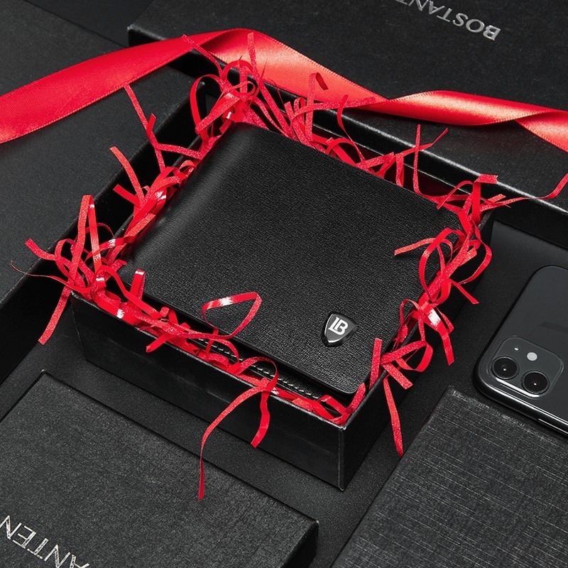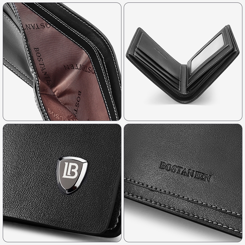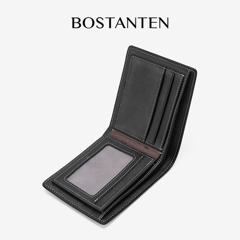 BOSTANTEN Dompet Lipat Pria Bahan Kulit Sapi Asli Coklat/Hitam