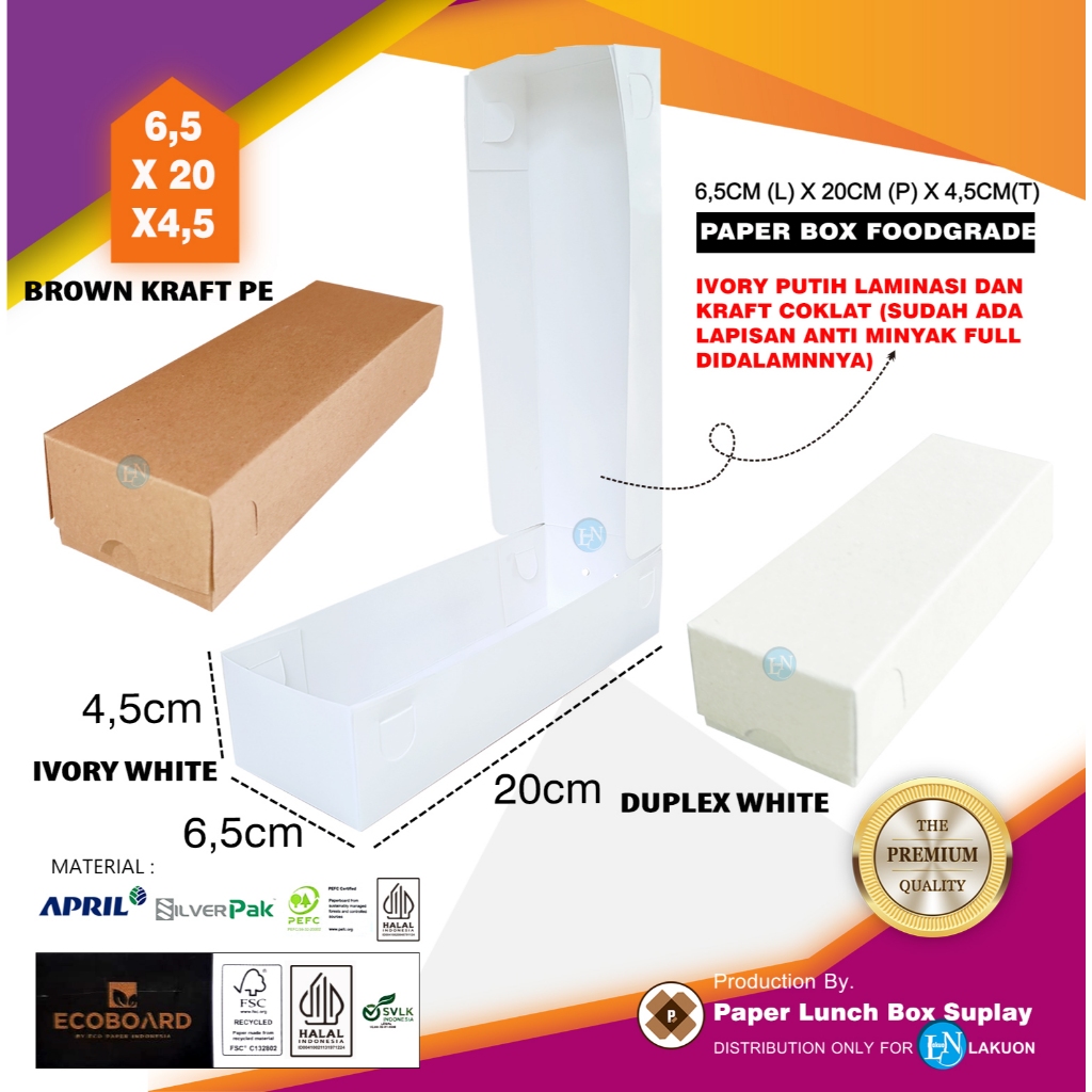 BOX SERBA GUNA UKURAN L 6,5 X P 20 X T 4,5 TERSEDIA DUA WARNA PUTIH BAHAN DUPLEX 310GR TANPA LAMINASI, KRAFT 290GR COKLAT SUDAH ADA LAMINASI DAN KRAFT COKLAT 300GR TANPA LAMINASI