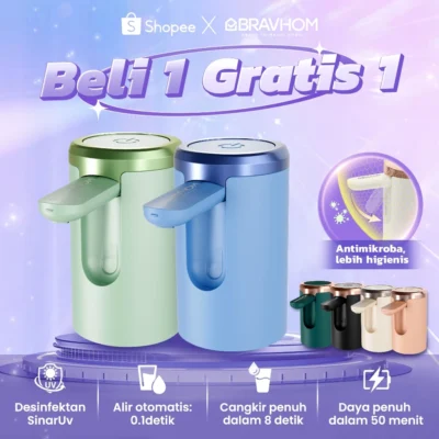 Beranda » Product » BRAVHOM Pompa Galon Dispenser Galon Bawah Lipat Desinfektan SinarUv 50 Menit Pengisian Cepat BL-WD02