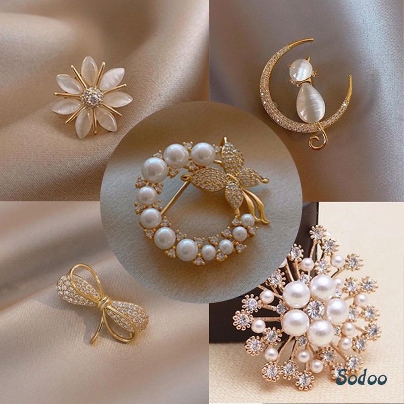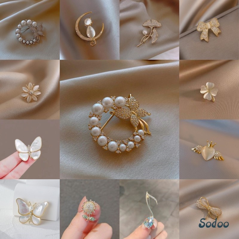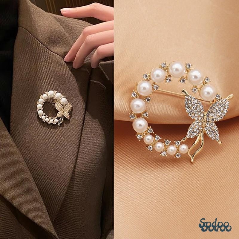 Brooch/Bros hijab/bros cantik/Bros Mutiara/ bros Kupu/bros lucu/ Bros Wanita Korean Fashion Style Butterfly Brooches Gold Color Pearl Brooch Pins Pakaian Aksesoris