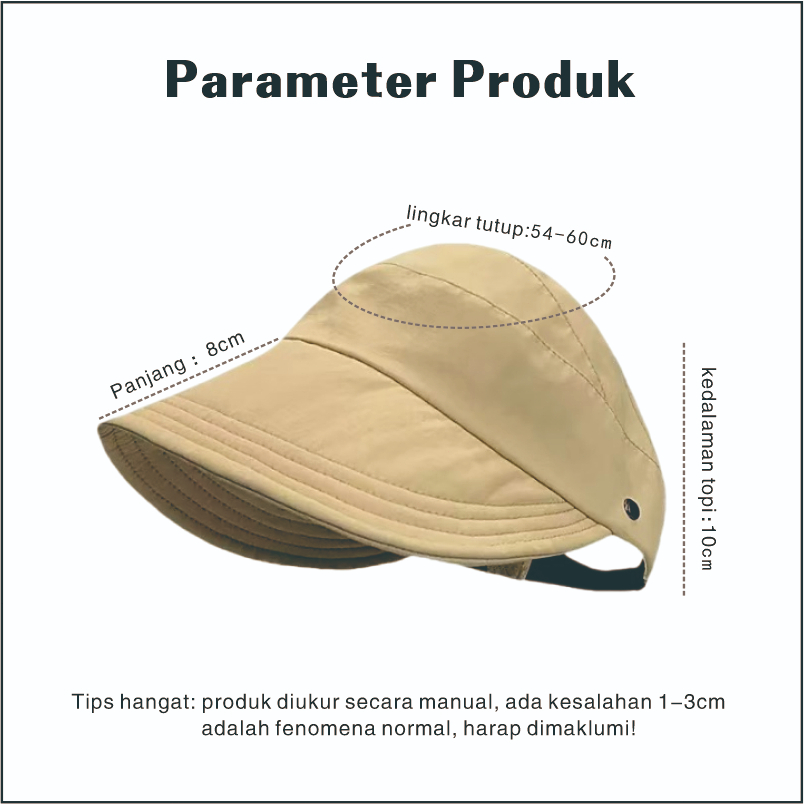 - Lingkar topi 54-60 cm