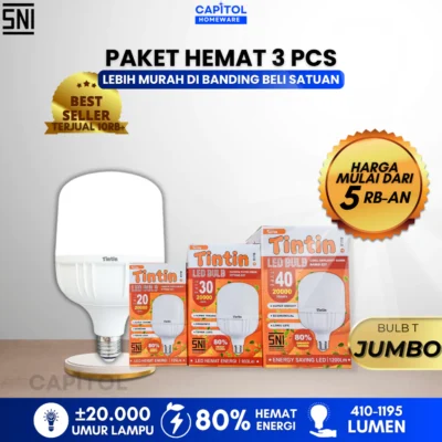 Beranda » Product » Capitol – Lampu LED JUMBO TABUNG Paket Hemat Bundling Beli 3 Lebih Murah Tipe 40/30/20/15/10/5 Tintin Putih Terang
