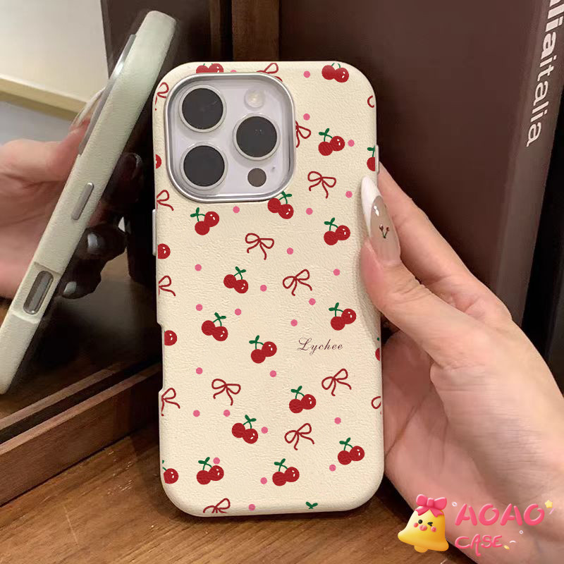 Case HP Untuk Vivo Y04S V40 V50 V40 LITE V50 LITE Y19s Y04 Y29 Y19s pro Y03 Y18 Y21 Y20 Y17s Y27s Y15 Y02 Y27 Y16 Y28 Y100 Y36 Y17 Y12 Y91C Y30 Y35 Y22 Y50 V29 V30 V30E V30E Busana Pita Merah Ceri Polkadot Kartun Bingkai Lensa Logam Mewah Soft Cover