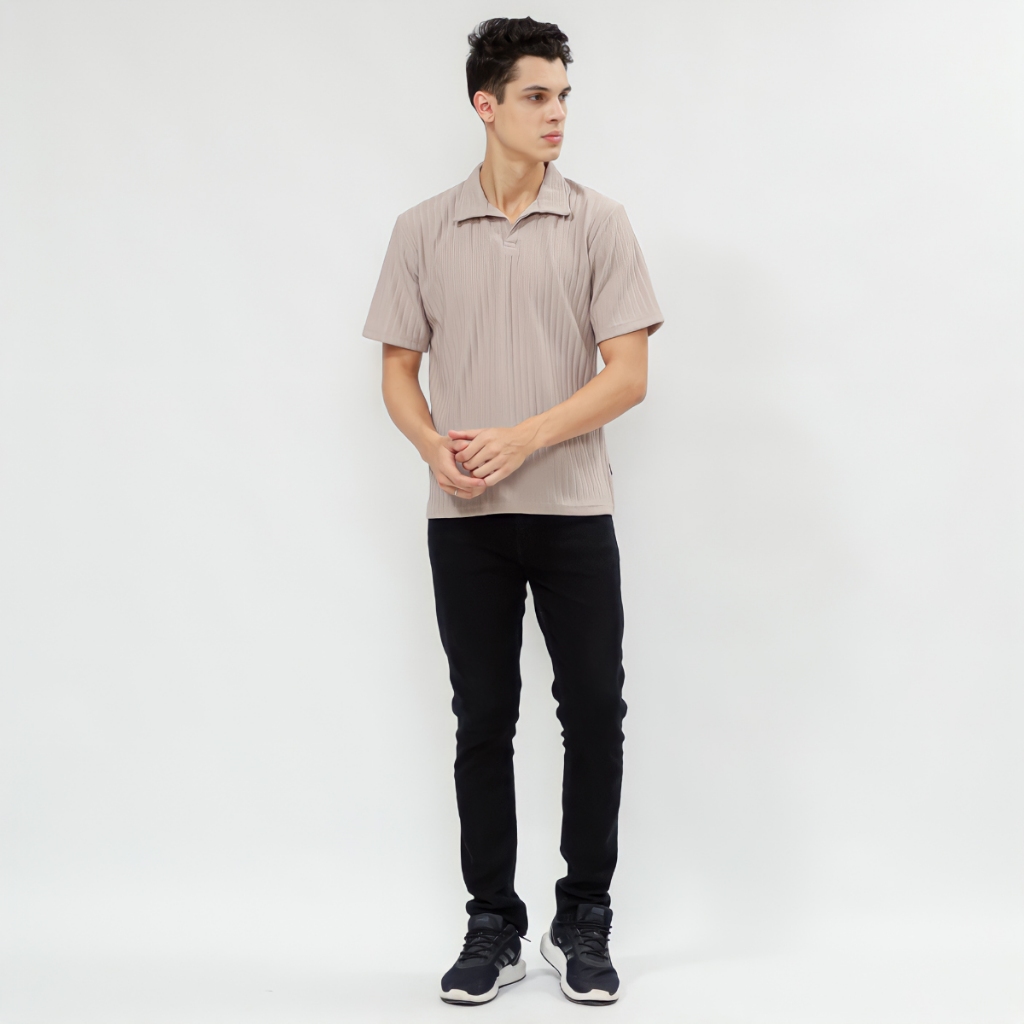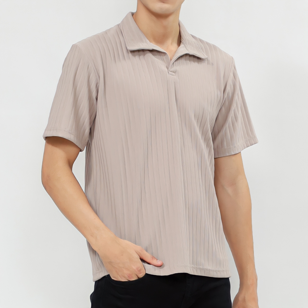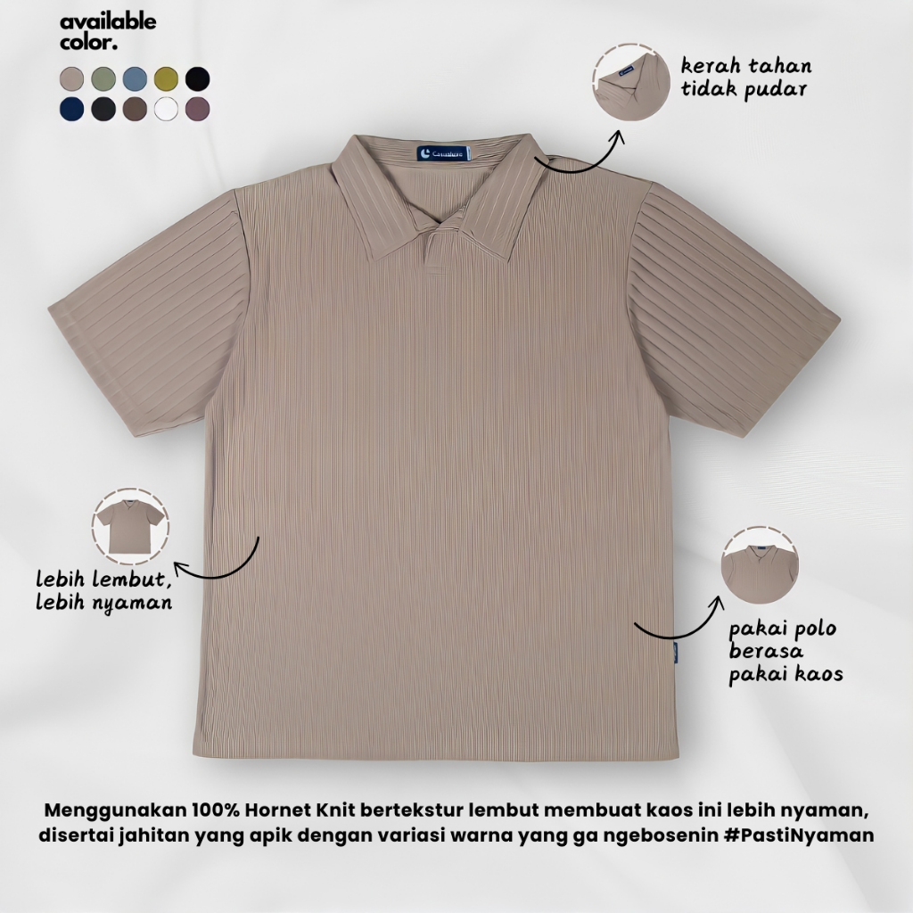 CASUALUXE Kaos Polo Shirt Pria Berkerah Bahan Knit Motif Original Beige