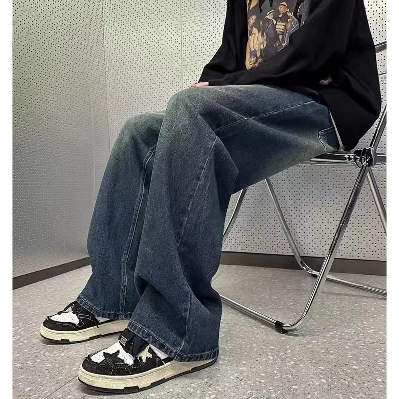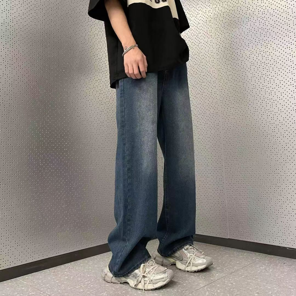 Celana jeans pria panjang baggy pants straight celana denim dewasa kulot loose fit jumbo cowok korean style