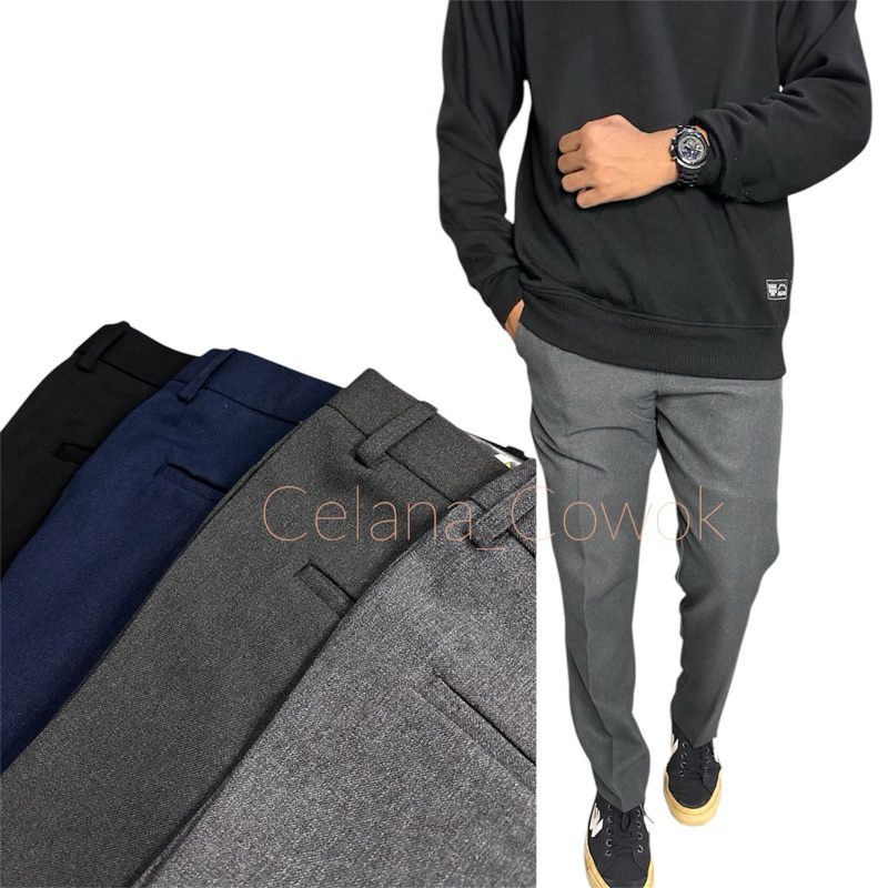 CELANA KANTOR FORMAL PRIA SLIMFIT BAHAN DASAR KAIN WOLL.