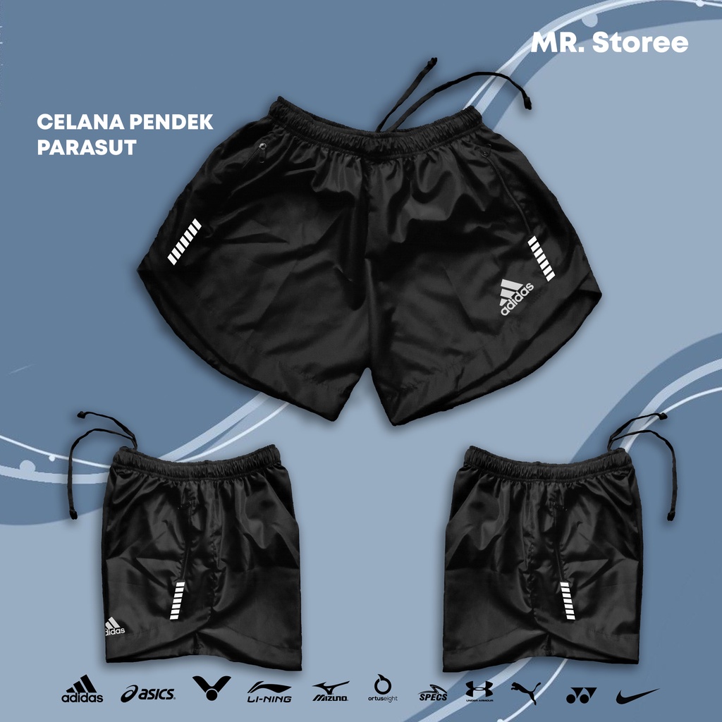 Celana Pendek Parasut/Olahraga & Outdoor/Running/Sport/Gym/Volly/Pria/Wanita/Saku Resleting