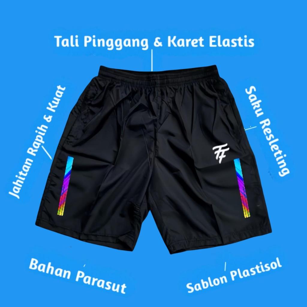 Celana Pendek Parasut Saku Resleting Pria Wanita Olahraga & Outdoor Sport Gym Jogging Bahan Berkualitas Kolor Bawahan Volly Futsal Badminton