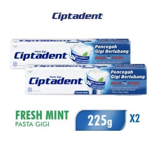 Ciptadent Pasta Gigi Maxi 12 Fresh Mint Tube Plus Jumbo 225gr x2