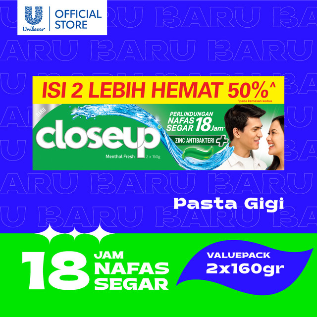 Sensasi dingin dan segar dari pasta gigi Closeup Menthol Fresh memberikan kesegaran yang tahan sepanjang hari. Setiap pasta gigi segar Closeup, memberikanmu nafas segar untuk percaya diri dan berani menjadi lebih dekat dengan orang tersayang. Kehadiran Fluoride dalam formula ini berfungsi untuk memperkuat enamel gigi, sedangkan kandungan Zinc efektif dalam melawan plak dan bakteri yang dapat menyebabkan masalah gigi dan gusi. Sensasi dingin dari Menthol yang terkandung dalam pasta gigi ini tidak hanya menyegarkan mulut Anda, tetapi juga memastikan kebersihan yang menyeluruh setiap hari. Sikat gigi dua kali sehari dengan pasta gigi Closeup untuk melindungi gigi dan gusi dari bakteri yang menumpuk dan menyebabkan bau mulut