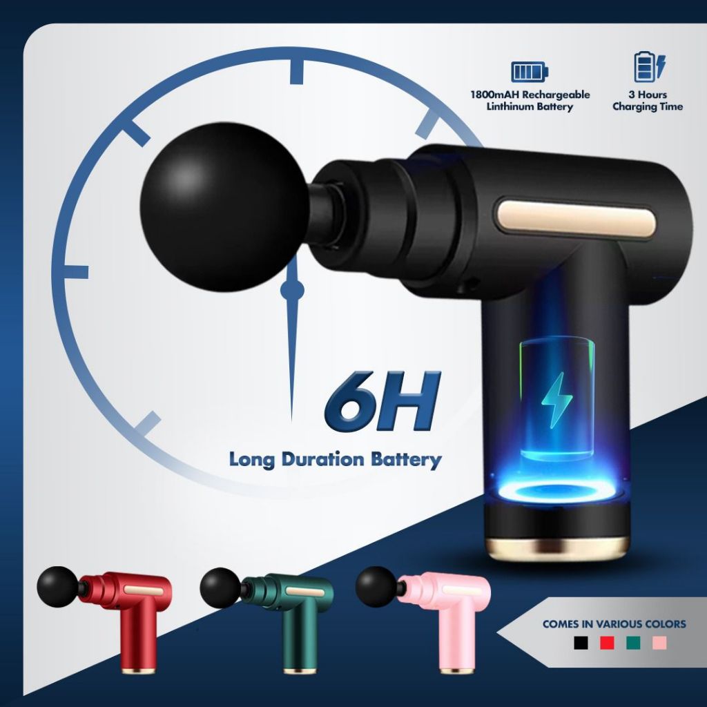 Massage gun ini menggunakan motor penggerak yang powerful sehingga kekuatan pijat sangat kencang.