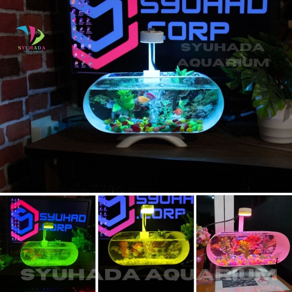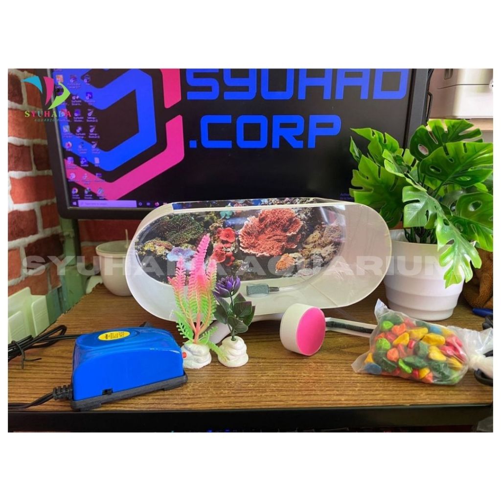 [COD] Promo !! 1 Set lengkap Aquarium mini plus mesin oxygn glembung dan lampu LED 3 Watt (M02)