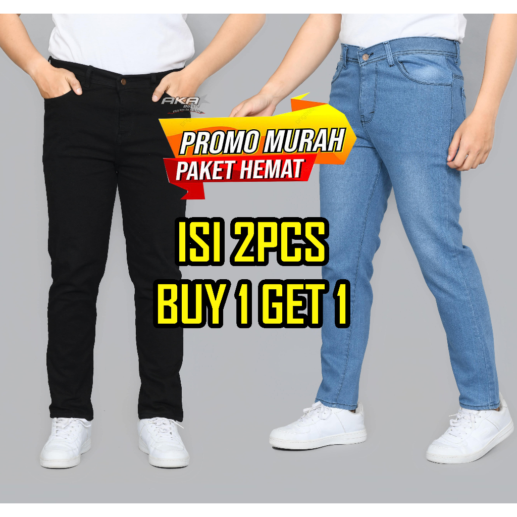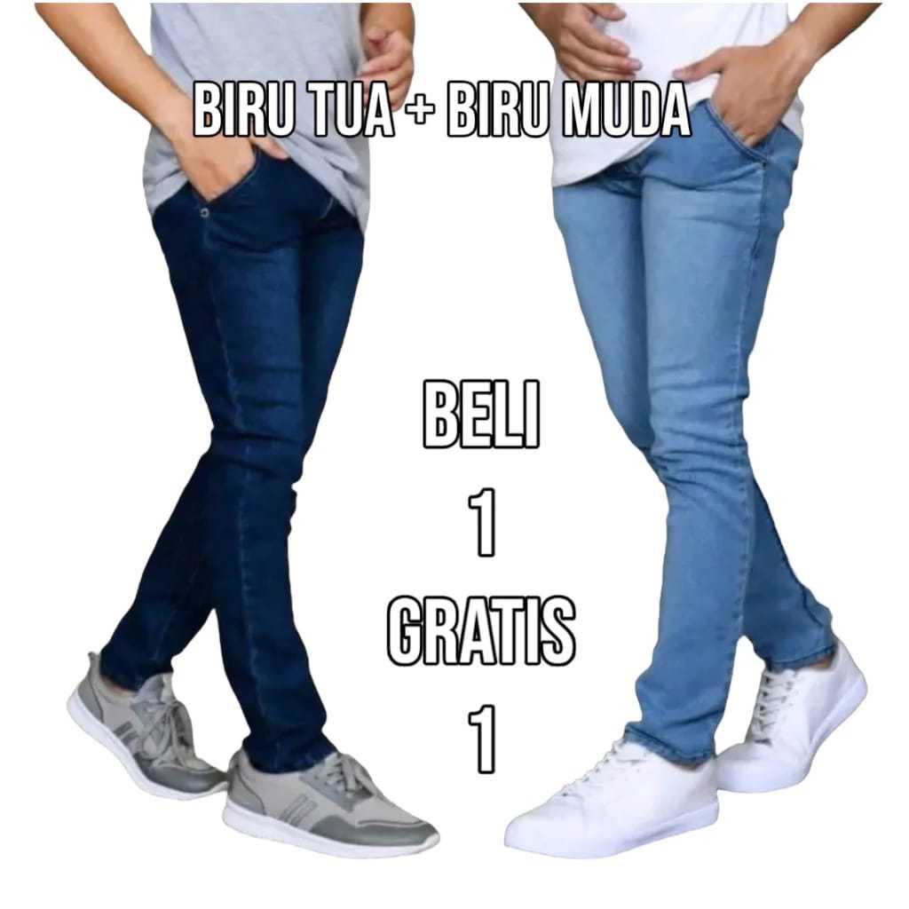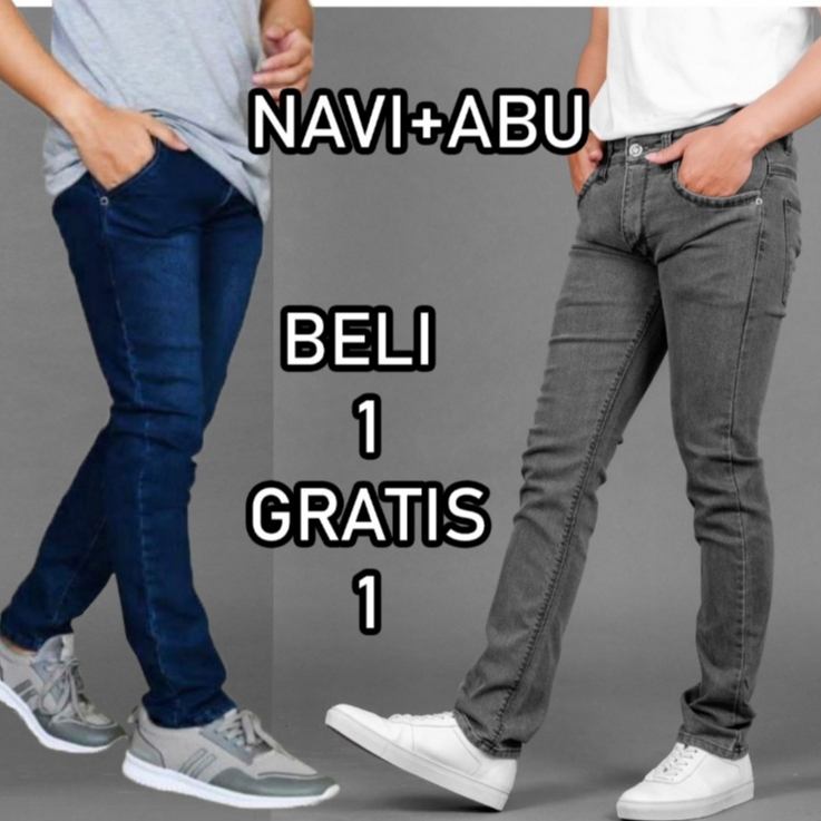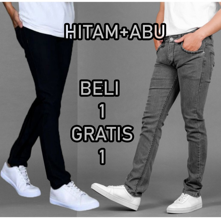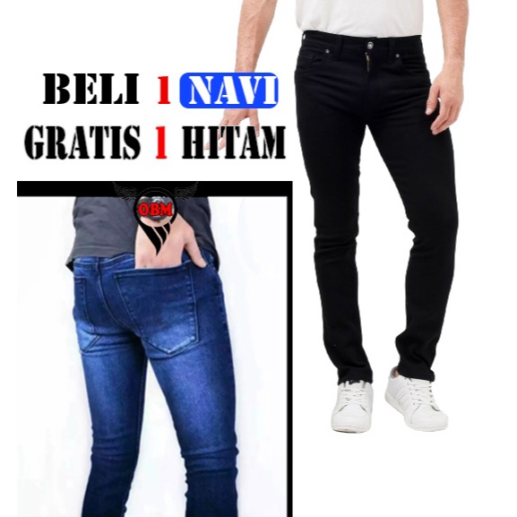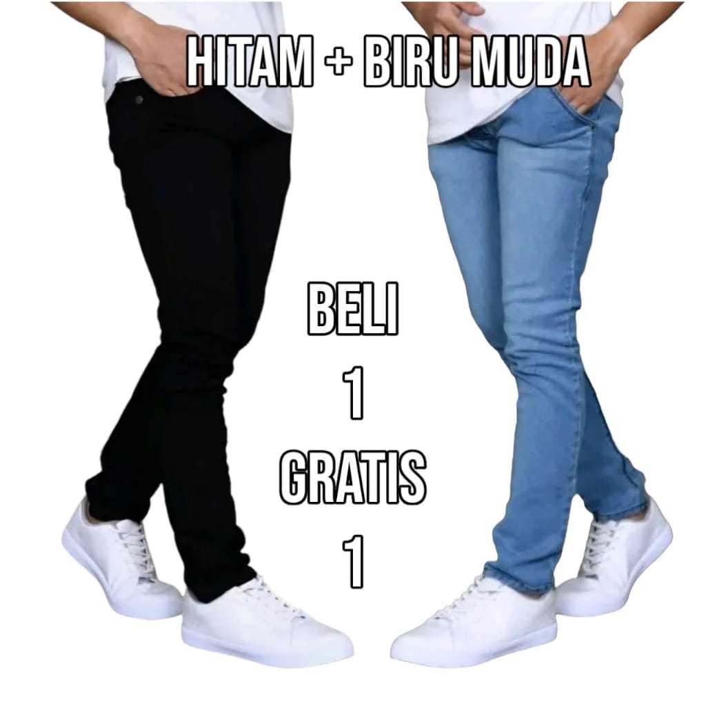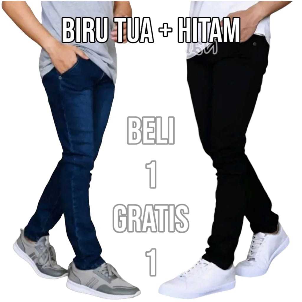 Cuci Gudang Beli 1 Gratis 1 Jeans Pensil Warna Hitam Navi