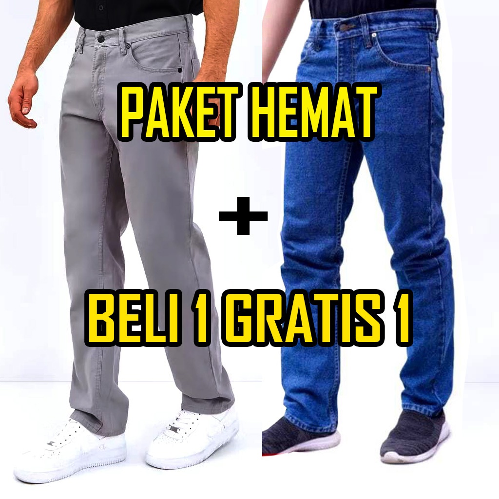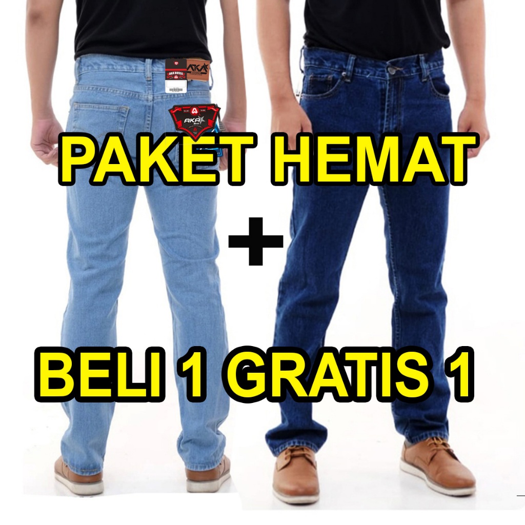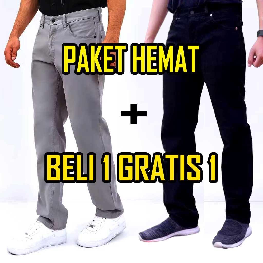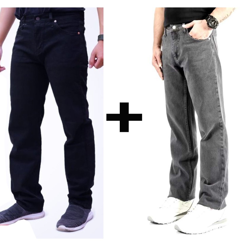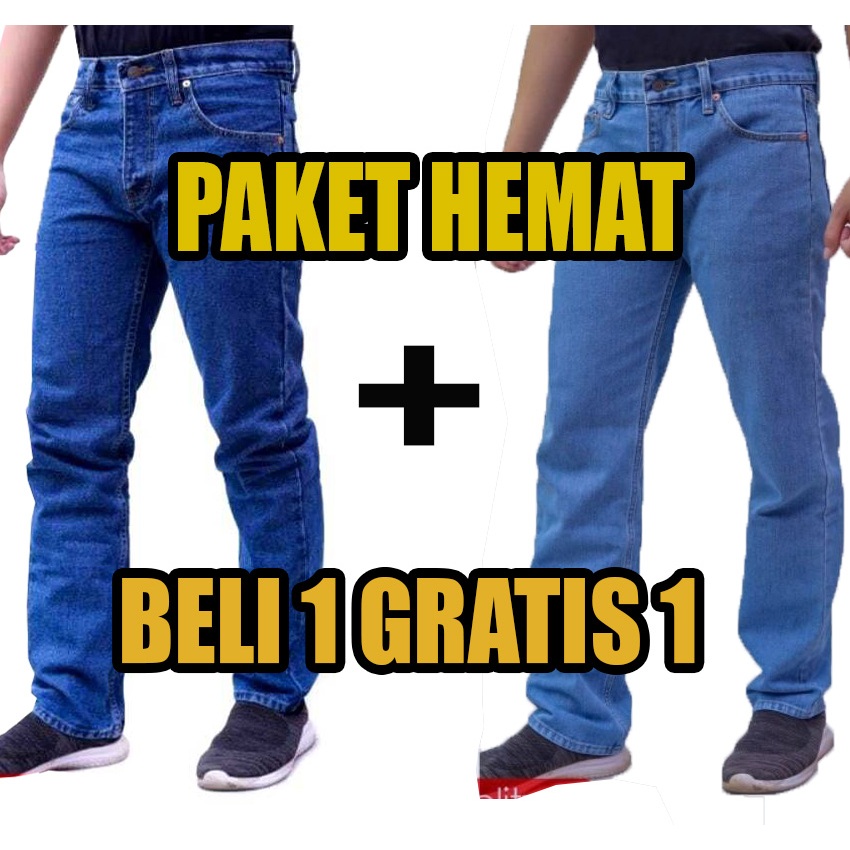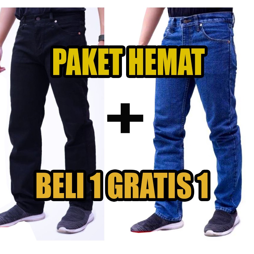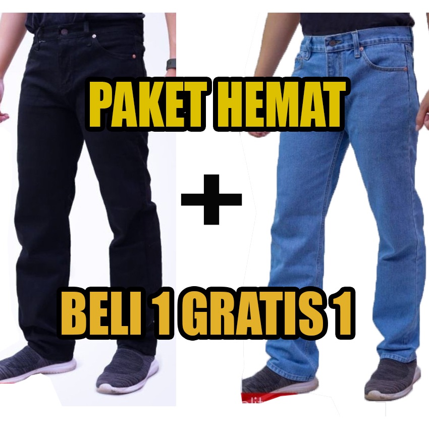 Cuci gudang Beli 1 Gratis 1 Jeans Standar Warna Hitam Navi Blitz